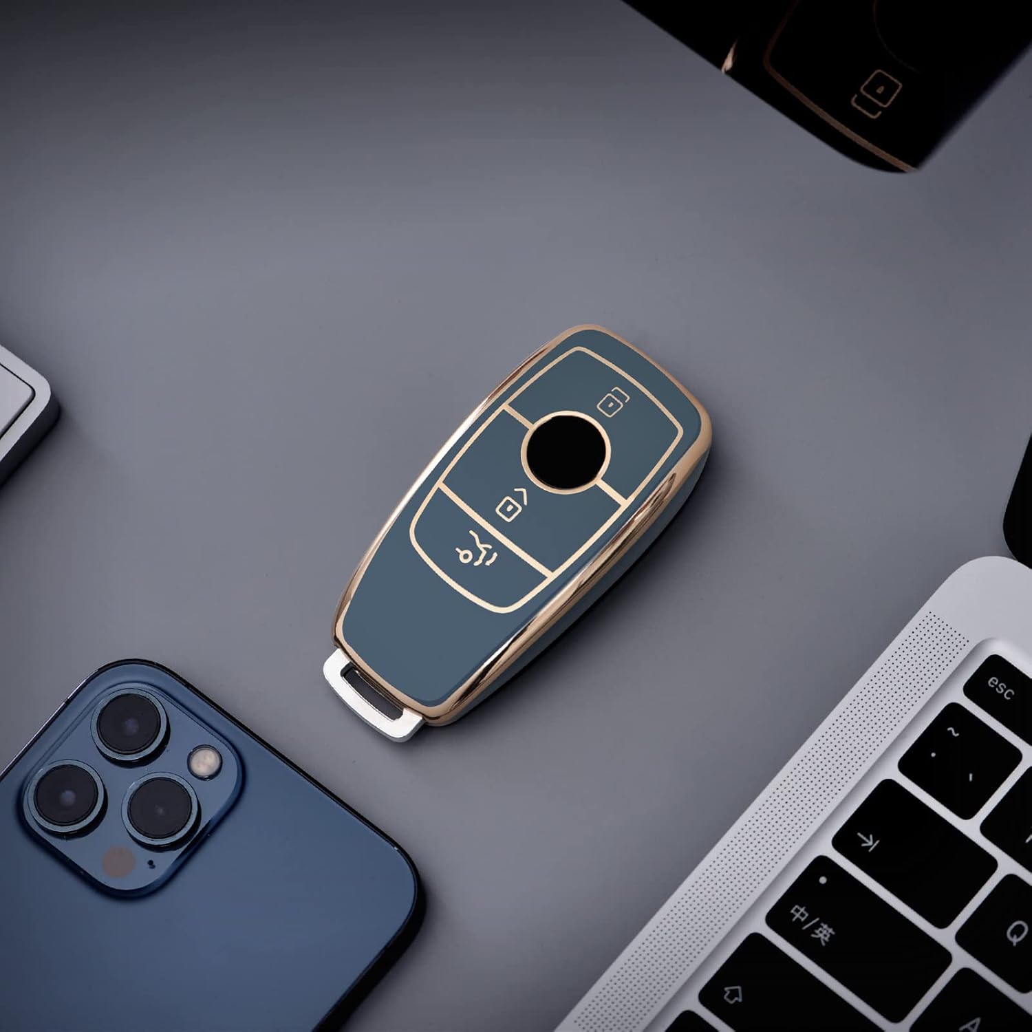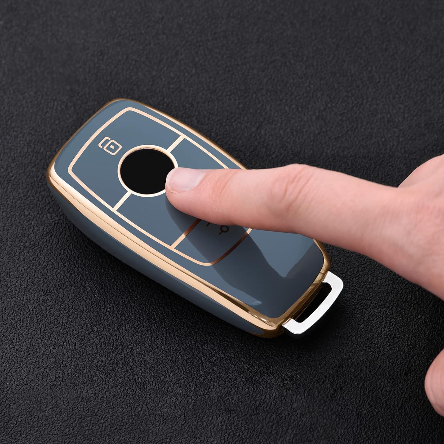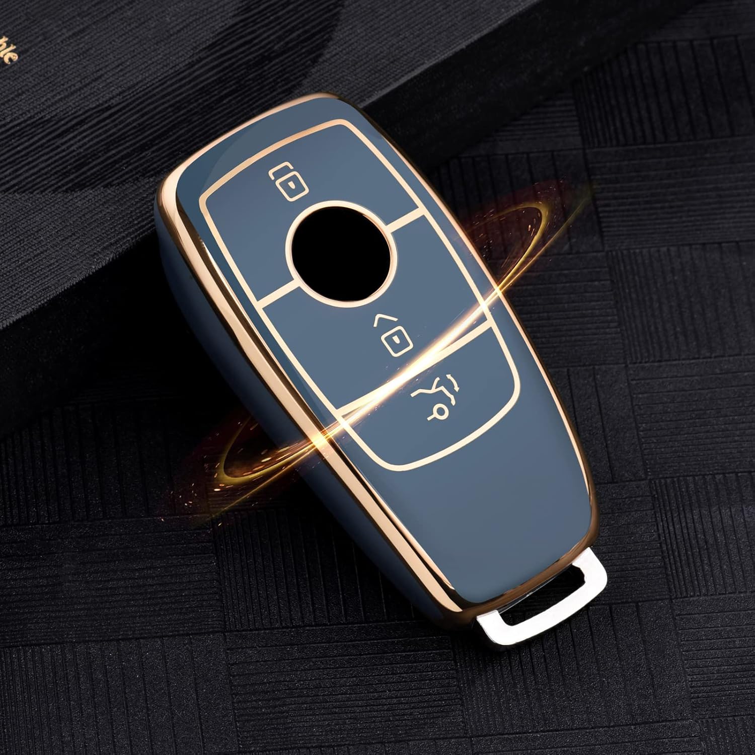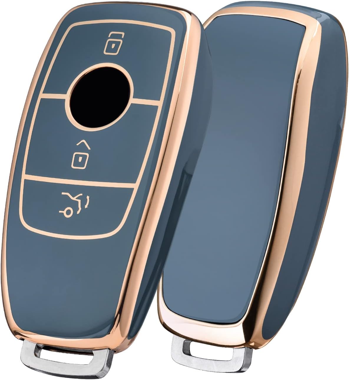 OATSBASF калъф за автомобилни ключове, подходящ за Mercedes Benz, защитен калъф за ключ за E-класа S-класа TPU (златен кант-сив)