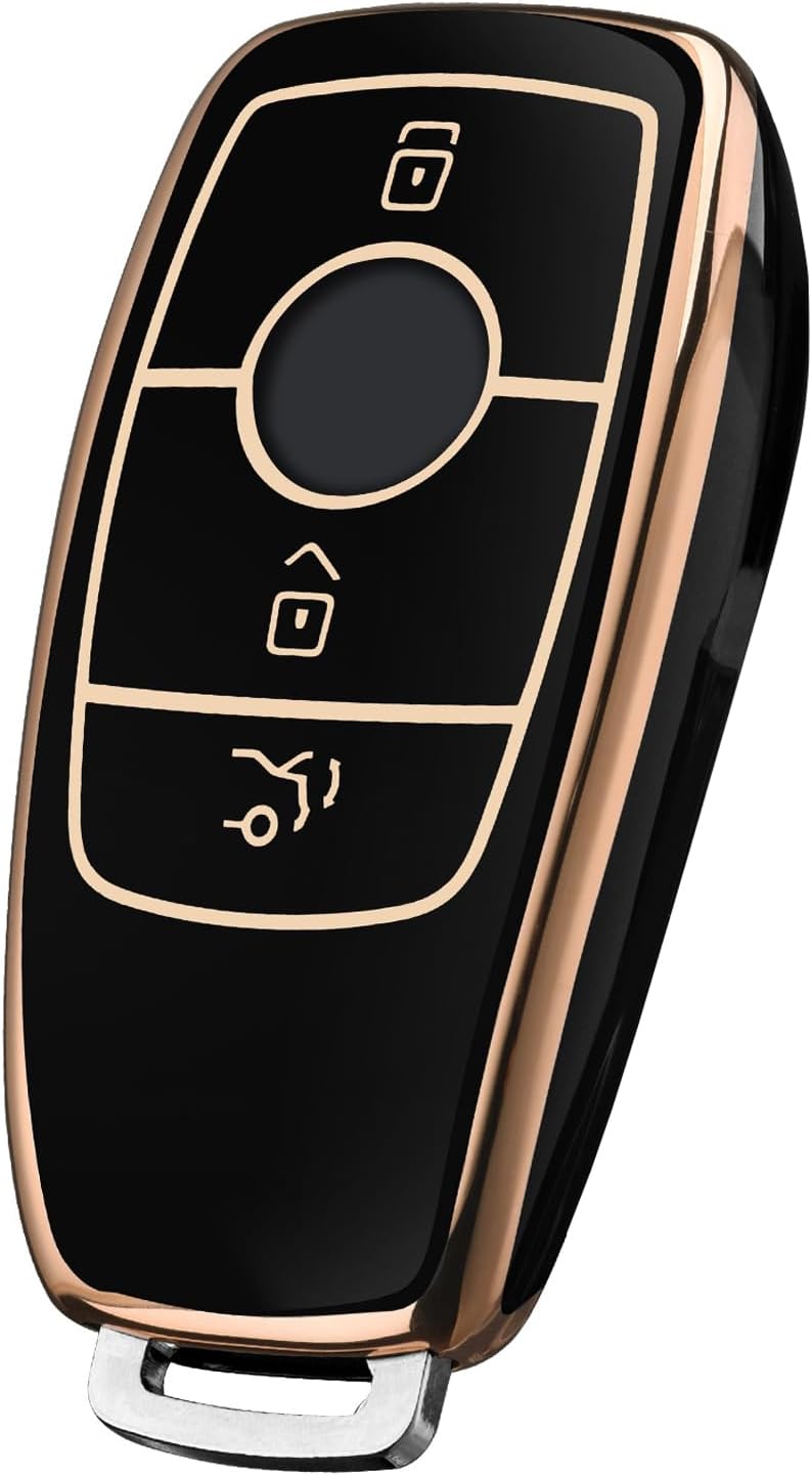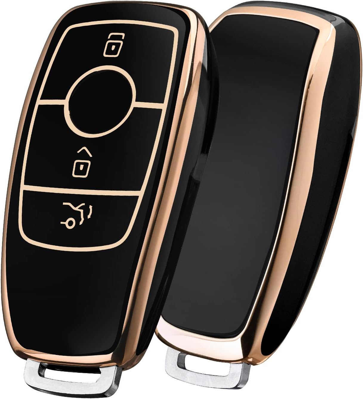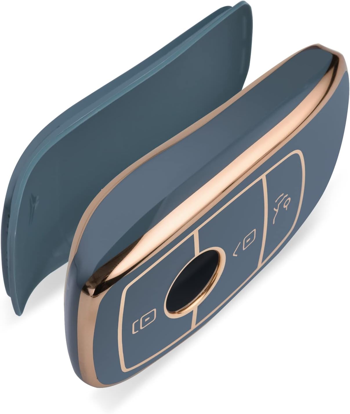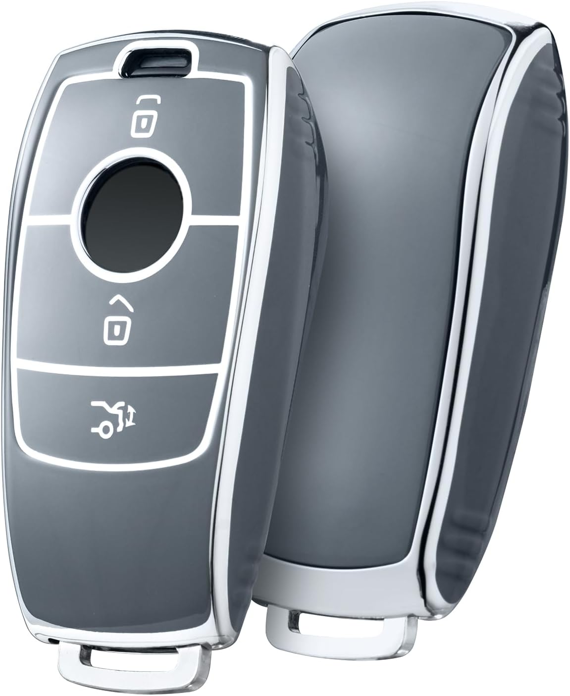 OATSBASF калъф за автомобилни ключове, подходящ за Mercedes Benz, защитен калъф за ключ за E-класа S-класа TPU (златен кант-сив)