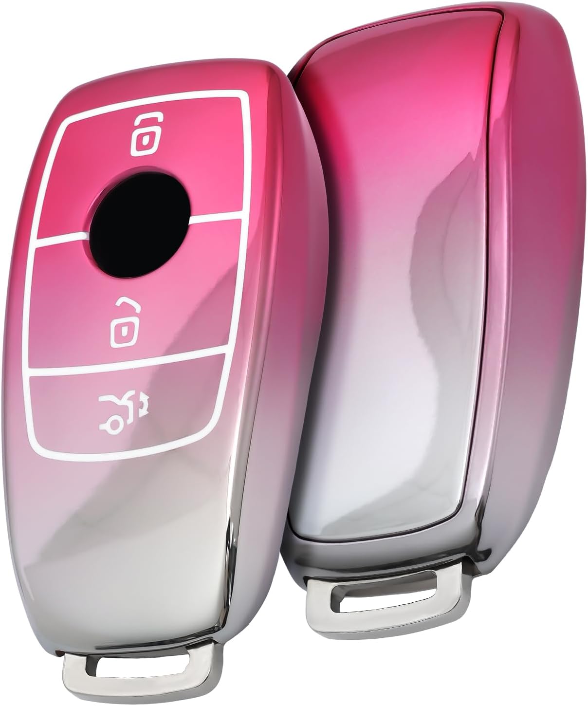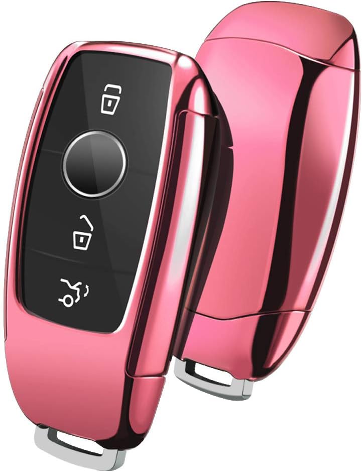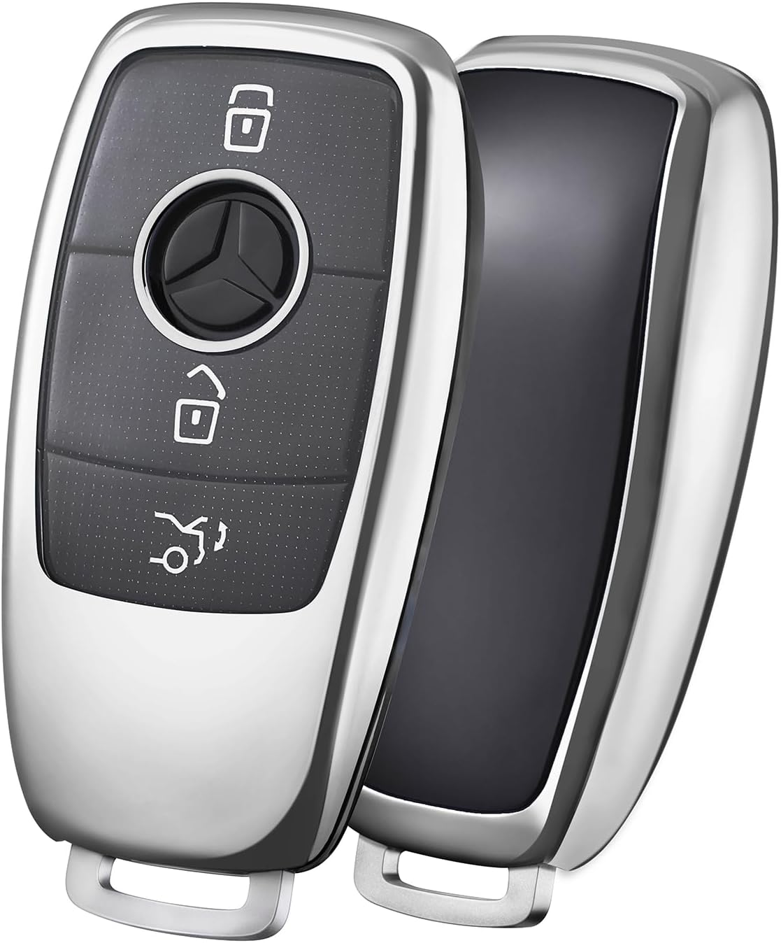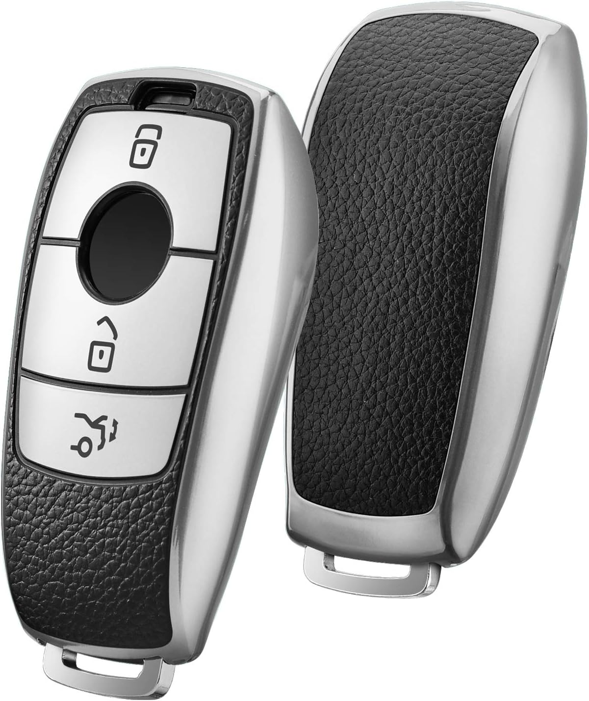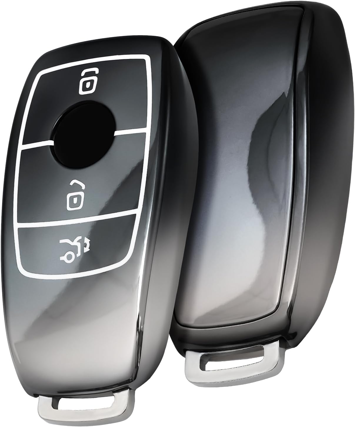 OATSBASF калъф за автомобилни ключове, подходящ за Mercedes Benz, защитен калъф за ключ за E-класа S-класа TPU (златен кант-сив)