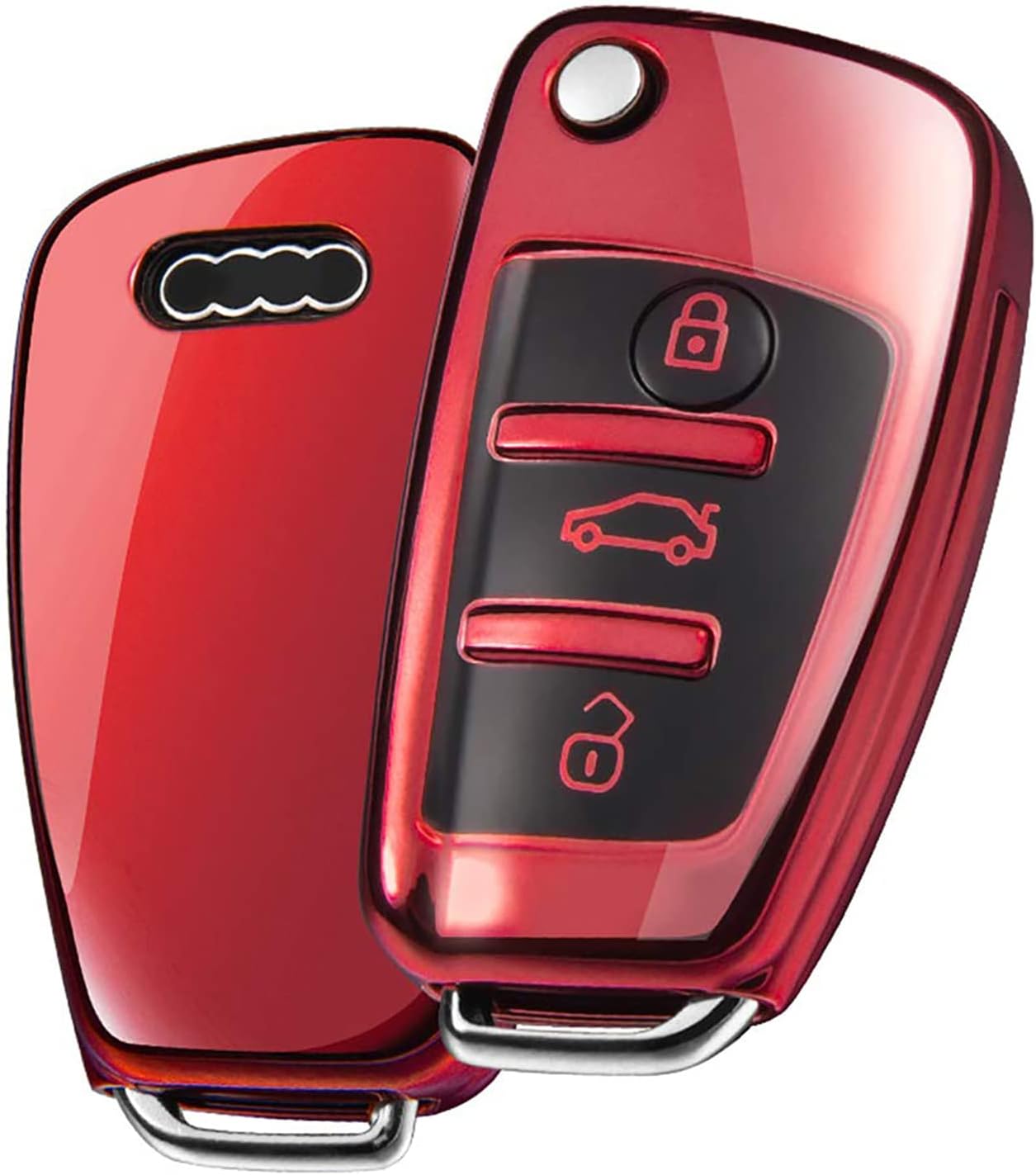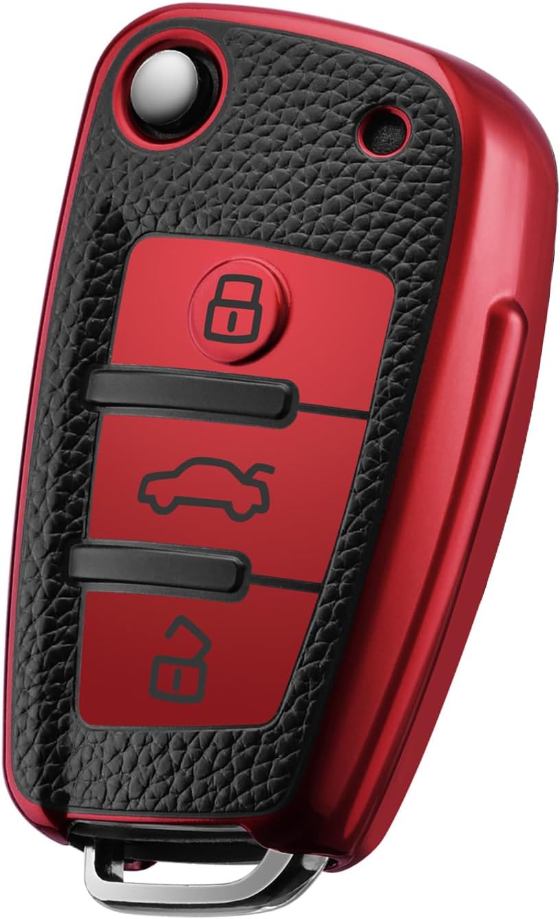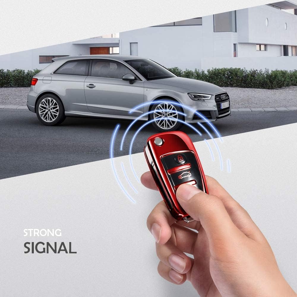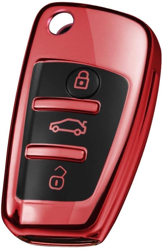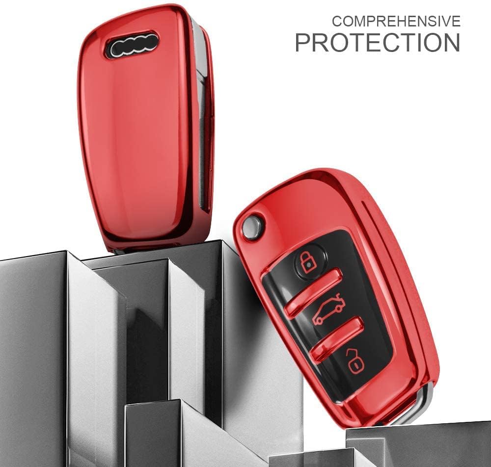 OATSBASF калъф за ключ за Audi, калъф за автомобилен ключ за A1 A3 A4 A6 Q3 Q5 Q7 S3 R8 TT силиконов TPU защитен калъф (D-червен)