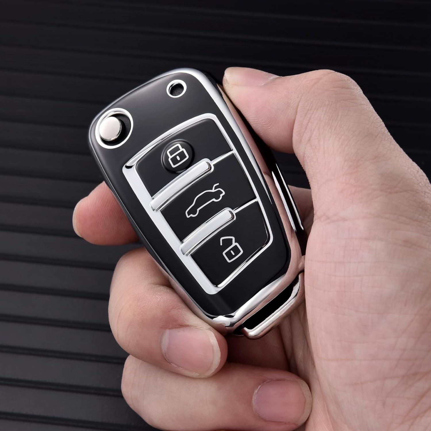 OATSBASF калъф за ключ за Audi, калъф за автомобилен ключ за A1 A3 A4 A6 Q3 Q5 Q7 S3 R8 TT силиконов TPU защитен калъф (сребрист кант-черен)