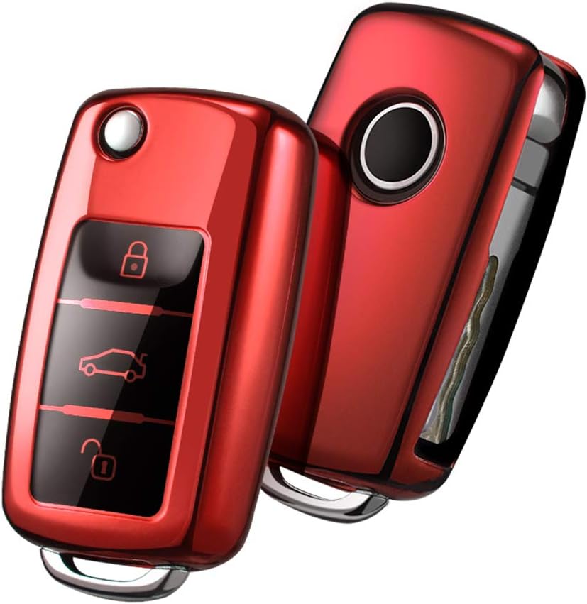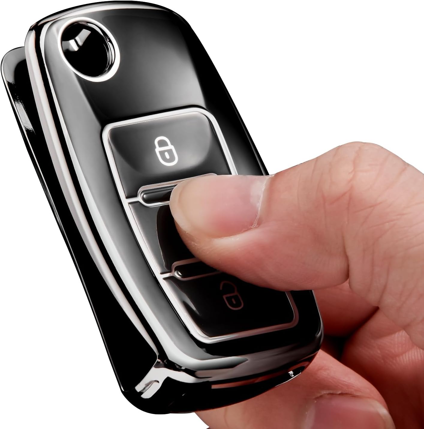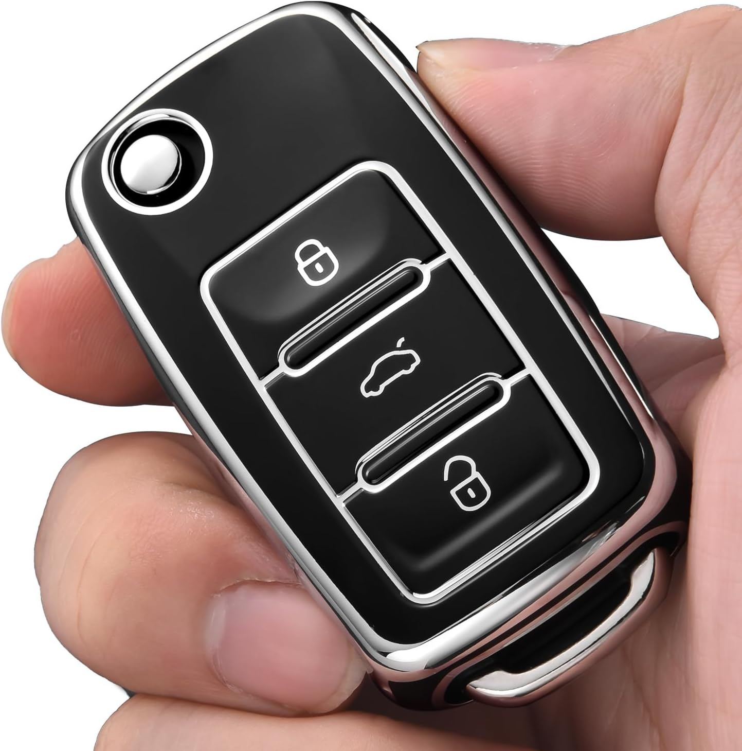 OATSBASF Кутия за автомобилни ключове за VW, VW Golf, Калъф за ключове за VW Polo, Passat, Skoda, Seat с 3 бутона (сребрист кант-черен)