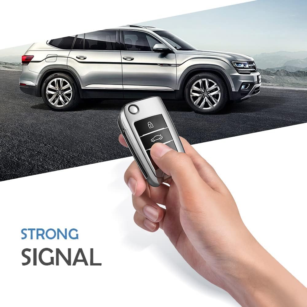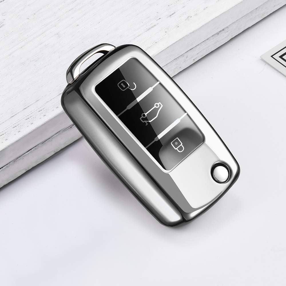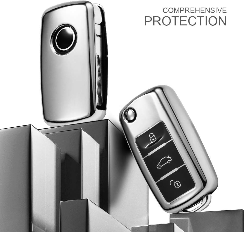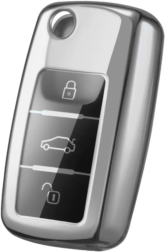 OATSBASF Кутия за автомобилни ключове за VW, VW Golf, Калъф за ключове за VW Polo, Passat, Skoda, Seat с 3 бутона (сребрист)