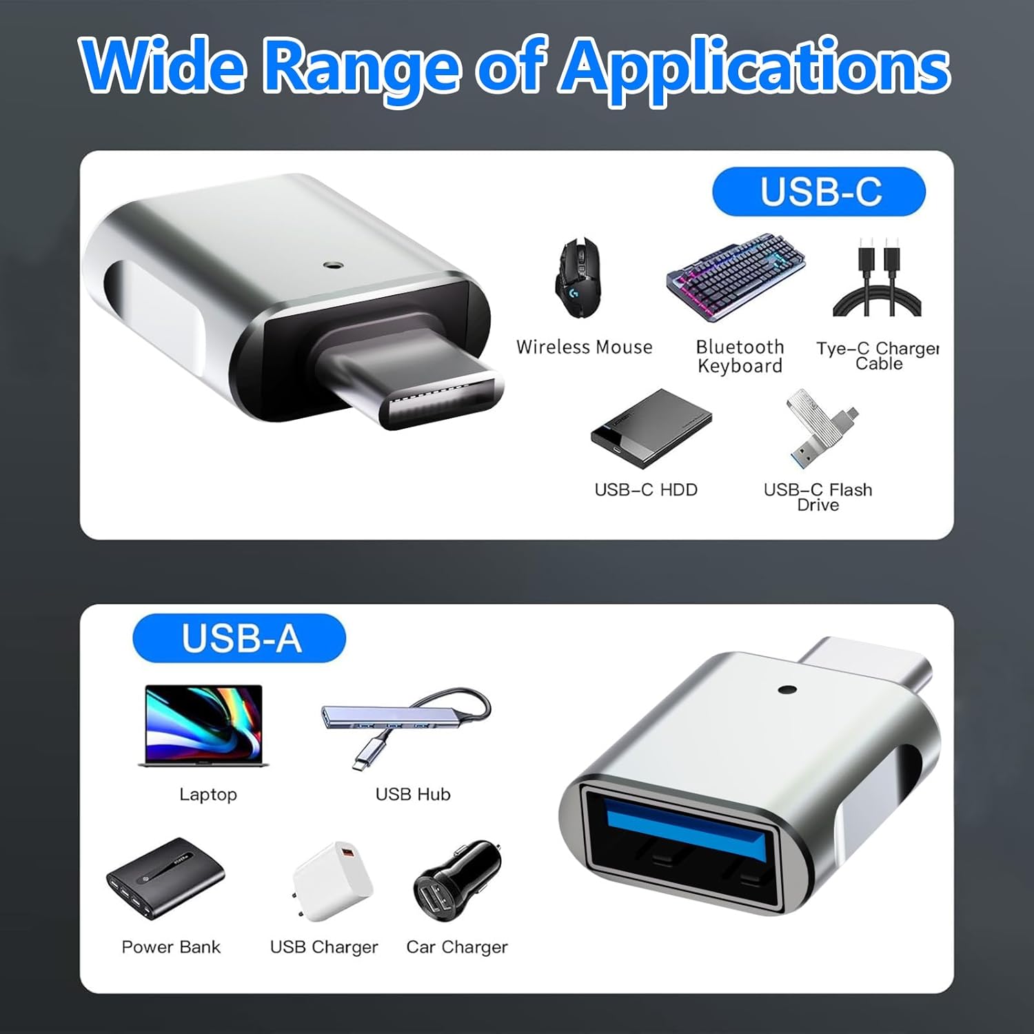 • Пълна съвместимост USB OTG адаптерът поддържа USB C OTG устройства. Съвместим е с iPhone 16/15 серия/ MacBook Pro M4/iPad/Mac Mini, Galaxy S24/S23 серия/S22 серия/S21 серия/S20 Fe/Note 20 Ultra/Note 20/Note 10 Lite/Note 10+/Note 10/A53/ Tab A7/ Tab S8/ Tab S7, Redmi Note 10 Pro/Note 10/ Redmi 9/ Mi 11/ Mi 10 серия/ Mi 9, Huawei P60 серия/P50 серия/P40 серия/P30 серия/ Mate 60 серия/Mate 60 серия и др.