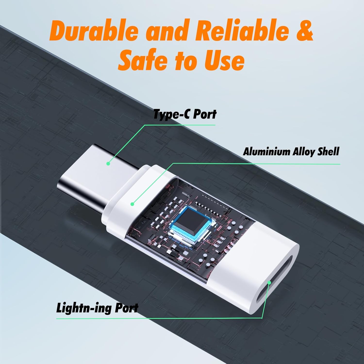 Obcxin Комплект от 3 адаптера Lightning женски към USB C мъжки, 36 W PD бързо зареждане USB C към Lightning адаптер за iPhone 15/16 Pro/16 Pro Max/Plus, Galaxy S24, iPad, бял