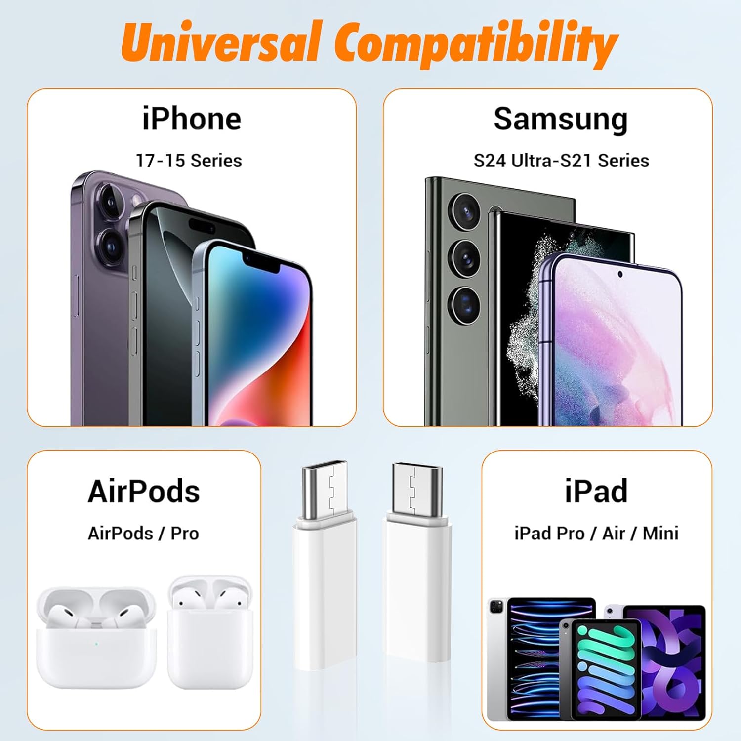 • Пълна съвместимост USB OTG адаптерът поддържа USB C OTG устройства. Съвместим е с iPhone 16/15 серия/ MacBook Pro M4/iPad/Mac Mini, Galaxy S24/S23 серия/S22 серия/S21 серия/S20 Fe/Note 20 Ultra/Note 20/Note 10 Lite/Note 10+/Note 10/A53/ Tab A7/ Tab S8/ Tab S7, Redmi Note 10 Pro/Note 10/ Redmi 9/ Mi 11/ Mi 10 серия/ Mi 9, Huawei P60 серия/P50 серия/P40 серия/P30 серия/ Mate 60 серия/Mate 60 серия и др.