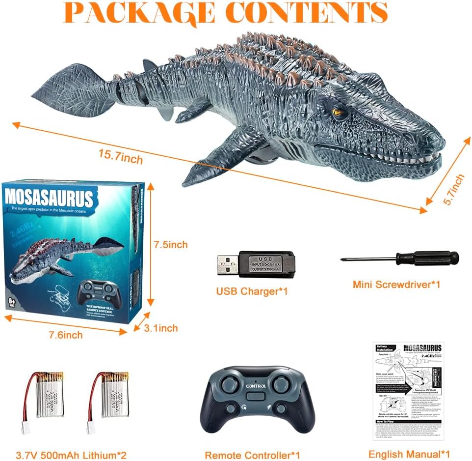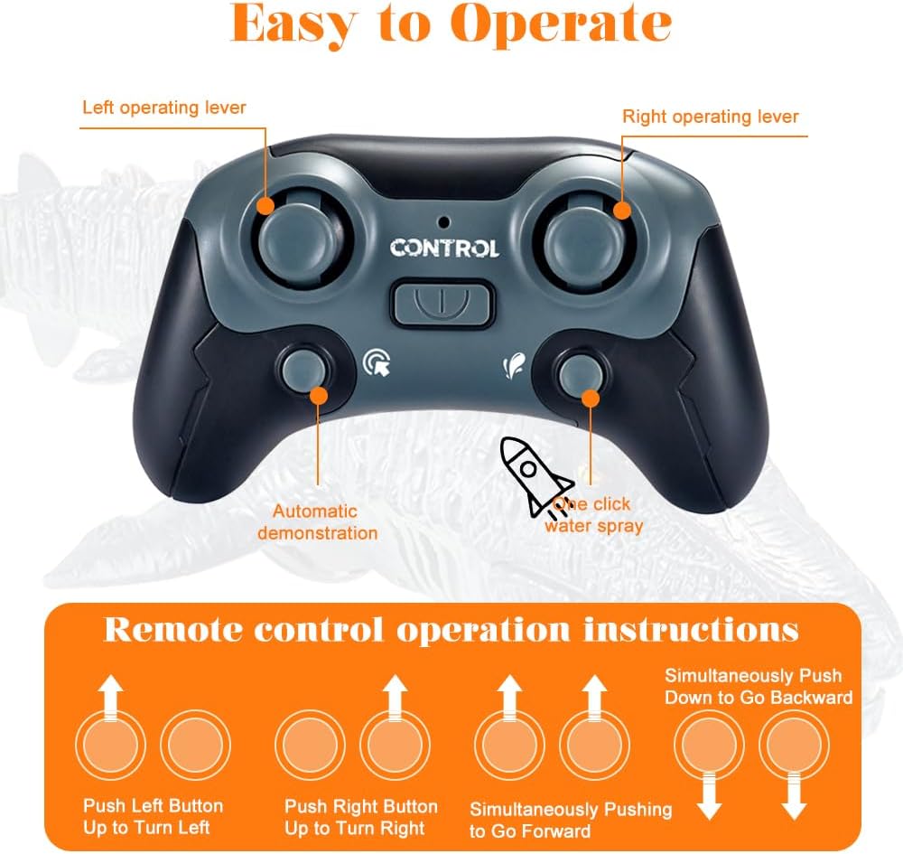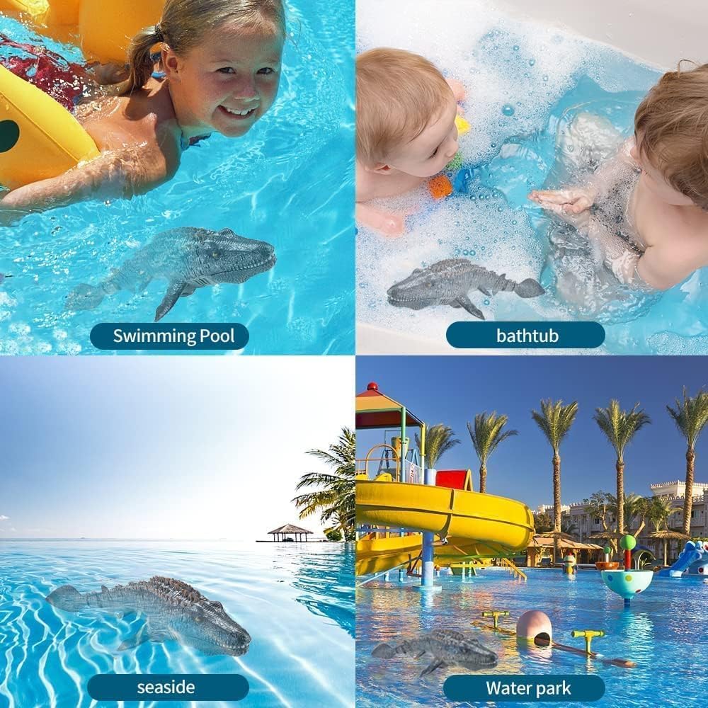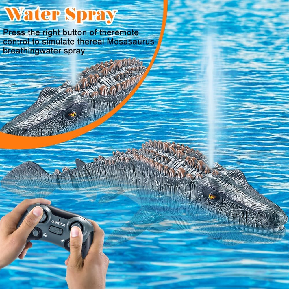 Плувайте с Мозазавъра до детето си и след това го управлявайте дистанционно, за да пръска вода, насладете се на забавното време!