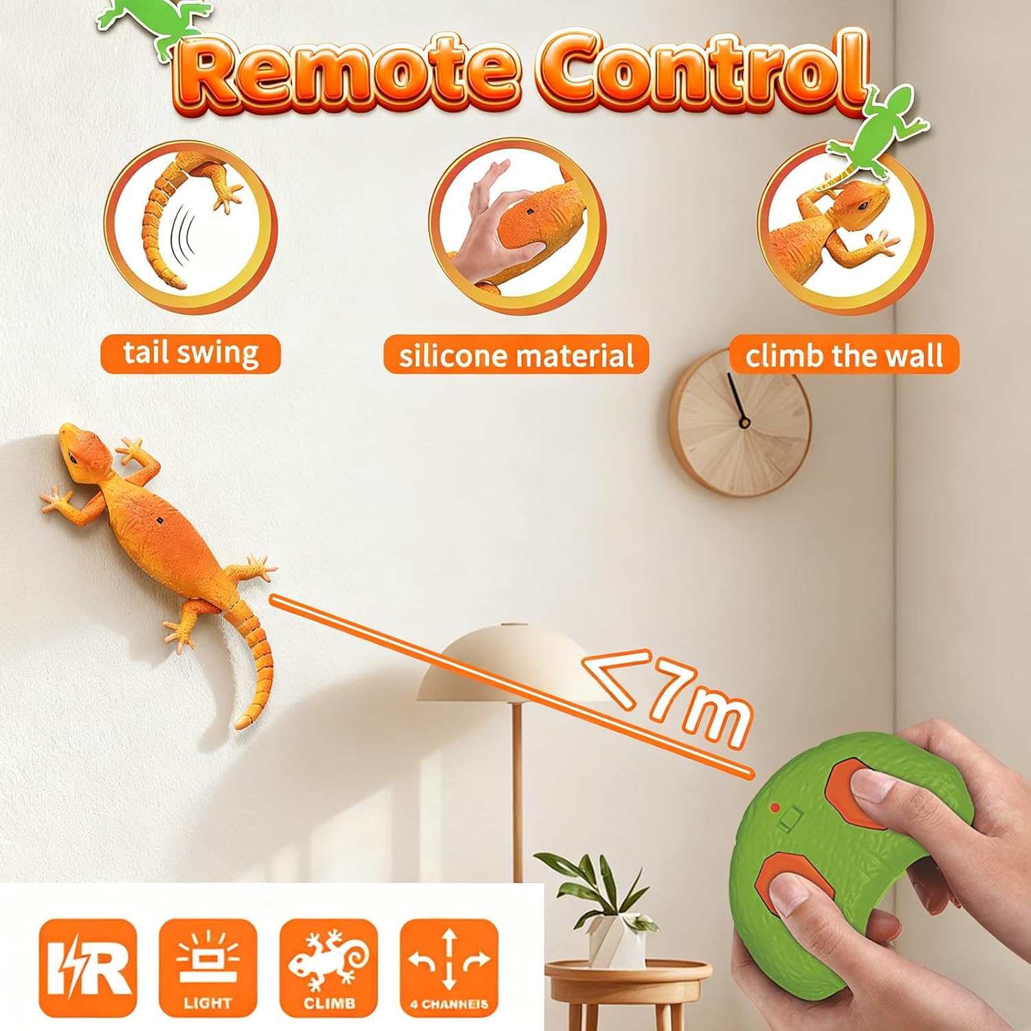 OBEST Хамелеон Геко за стена и таван с дистанционно управление, LED очи и реалистични движения, включва дистанционно управление - за деца над 4 години