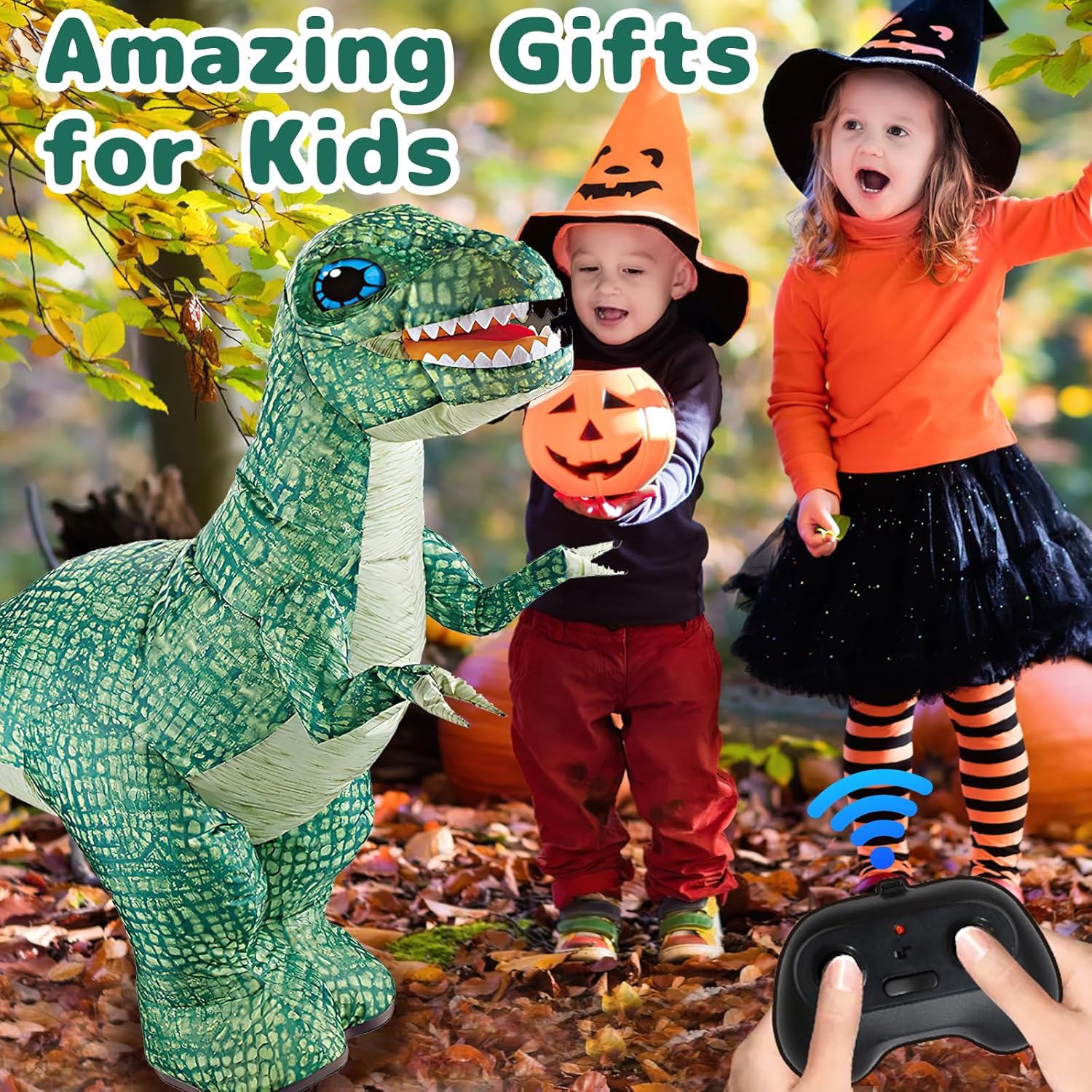 OBEST Играчка динозавър с дистанционно управление, 90 см надуваем електрически динозавър, 2.4GHz RC презареждащ се балон, въртене на 360°, ходене, бързо надуване, детски подарък изненада