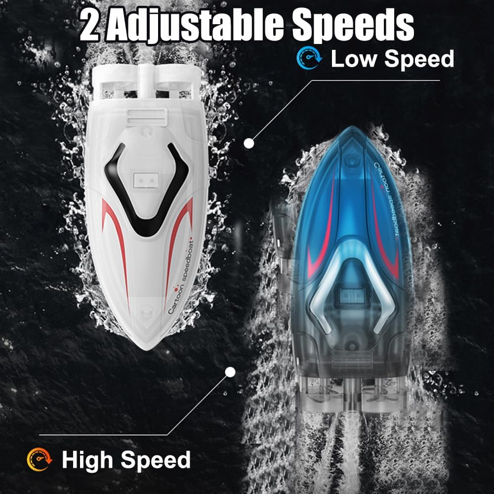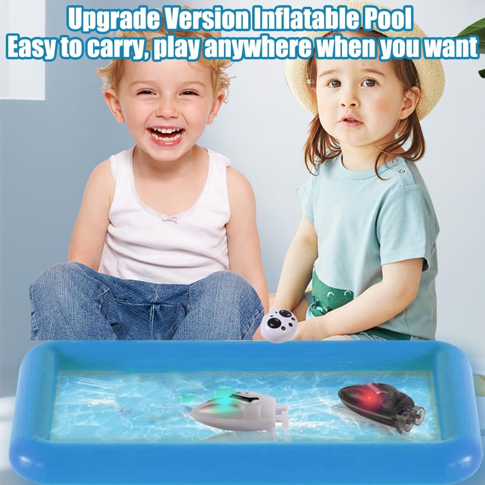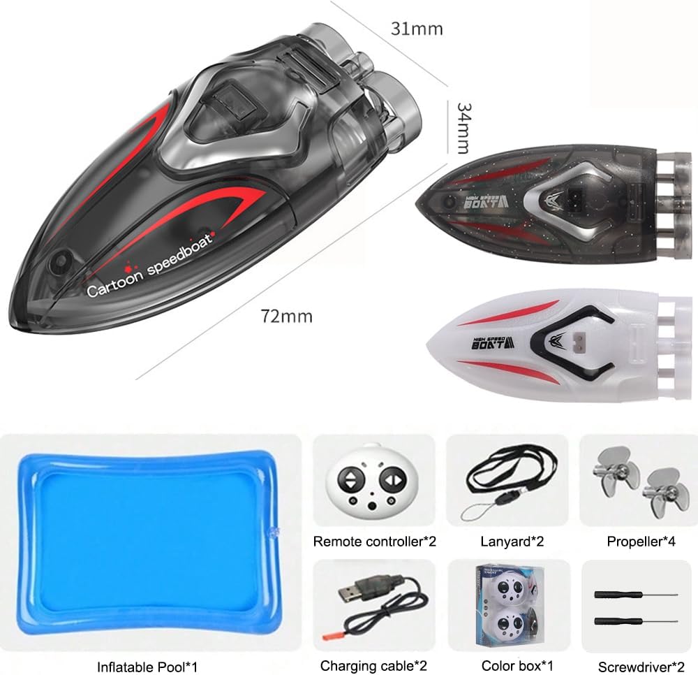 OBEST Пакет от 2 мини лодки, лодка с дистанционно управление с LED светлина, RC състезателни лодки с 2.4 GHz водоустойчиво дистанционно управление и надуваем басейн, играчка за басейн, лодка с дистанционно управление за момчета /