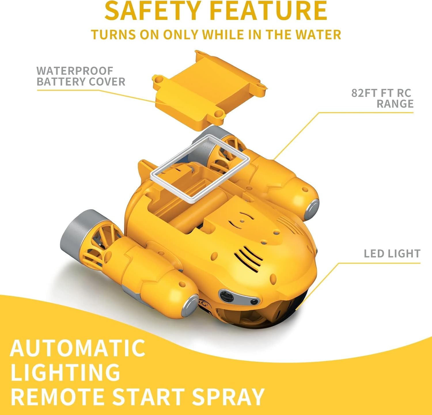 2.4G безжично водоустойчиво дистанционно управление може да контролира предната/задната част, лявото/дясното 360° завъртане, автоматична демонстрация, пръскане/осветление на дистанционното управление.