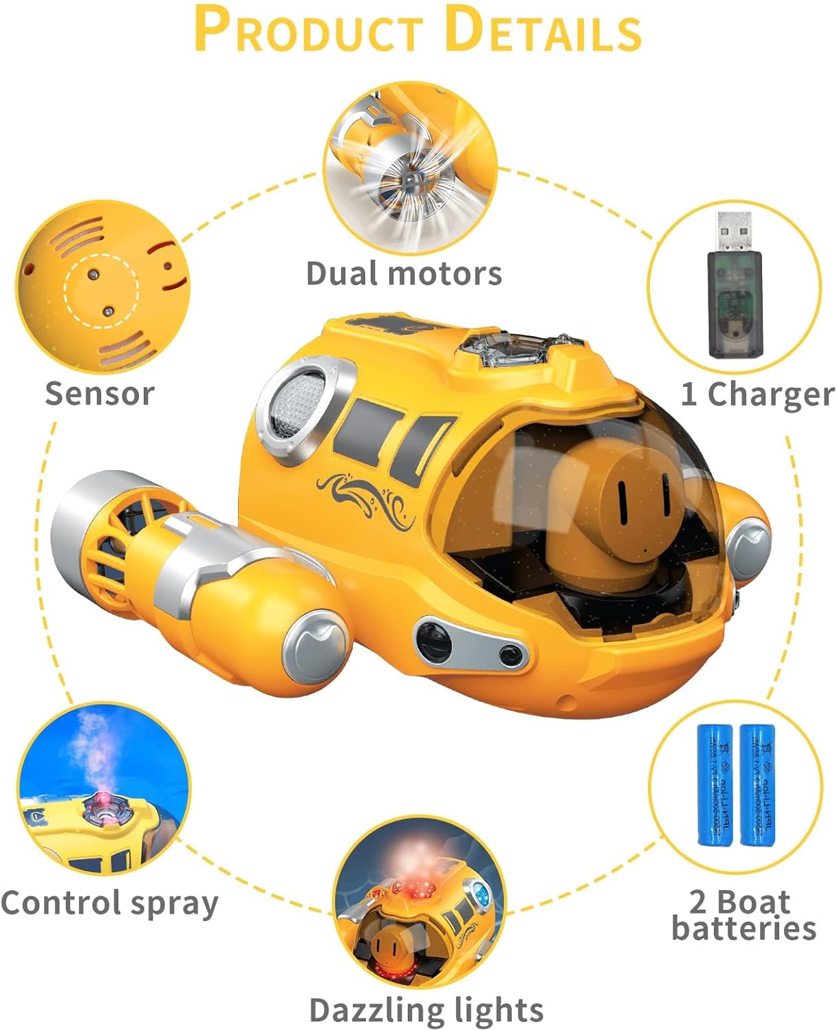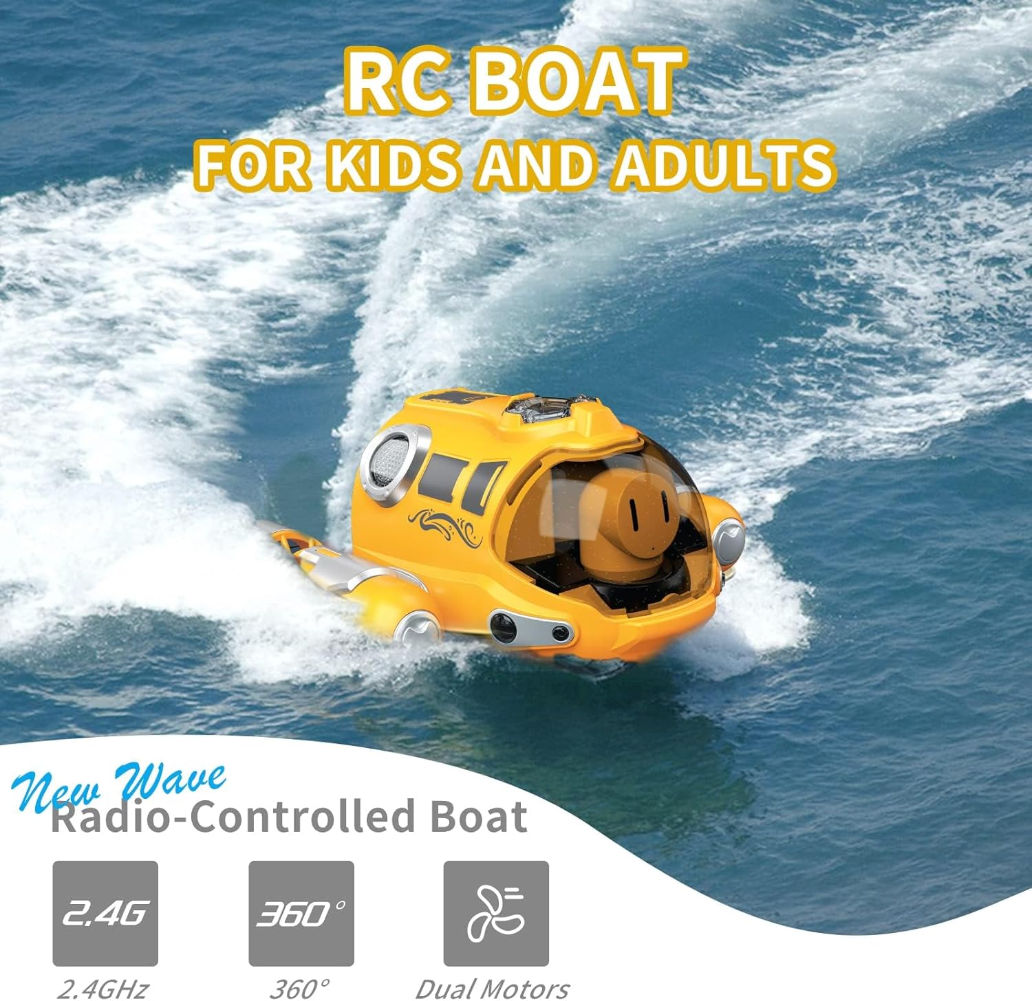 The remote controlled boat has a beautiful shape, and I believe it is very attractive for children. Two separate propellers can each achieve 360° rotation and cause a series of waves.