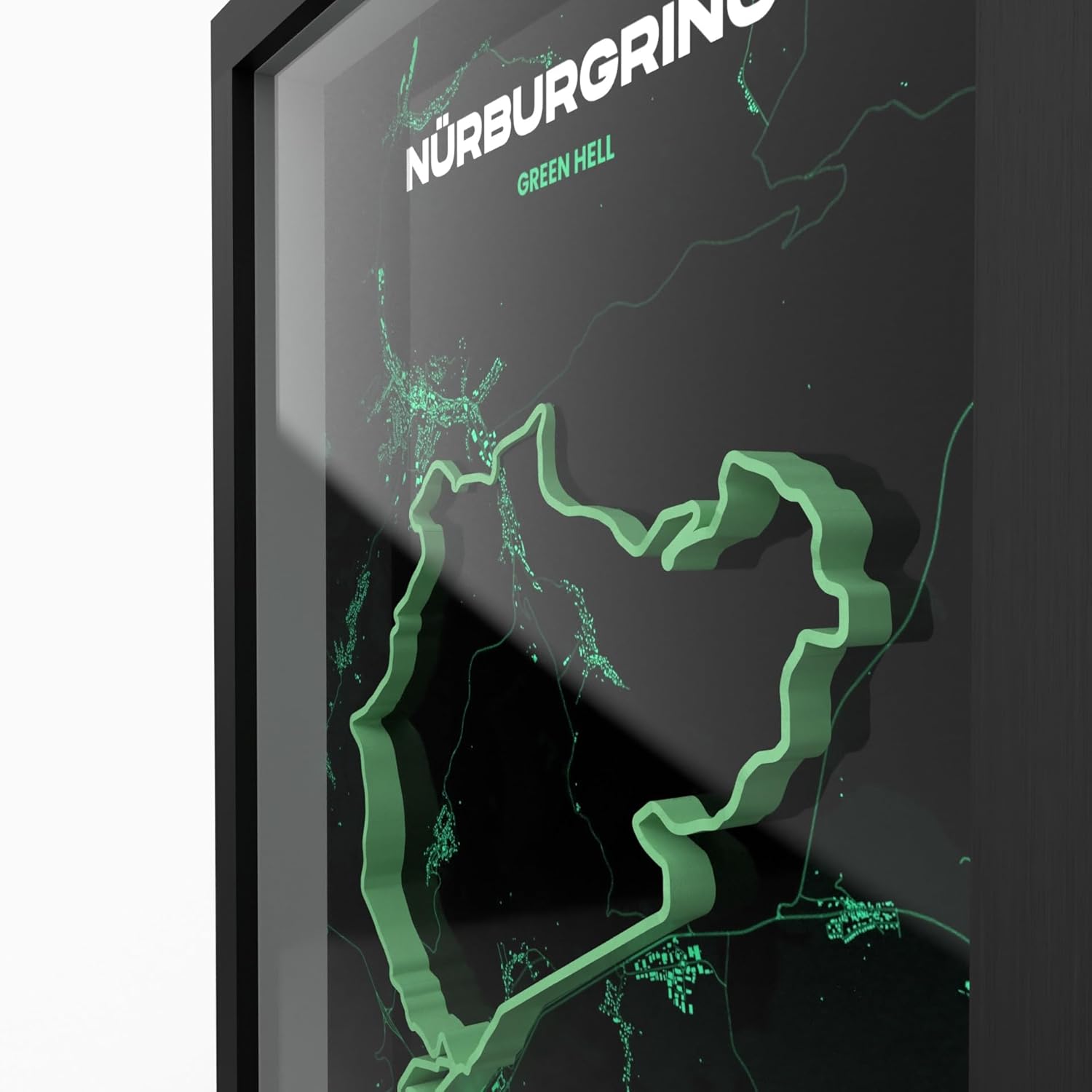 Изживейте състезателните писти в ново измерение. Благодарение на технологията за 3D печат, контурът на пистата стърчи от плаката и създава визуален ефект.