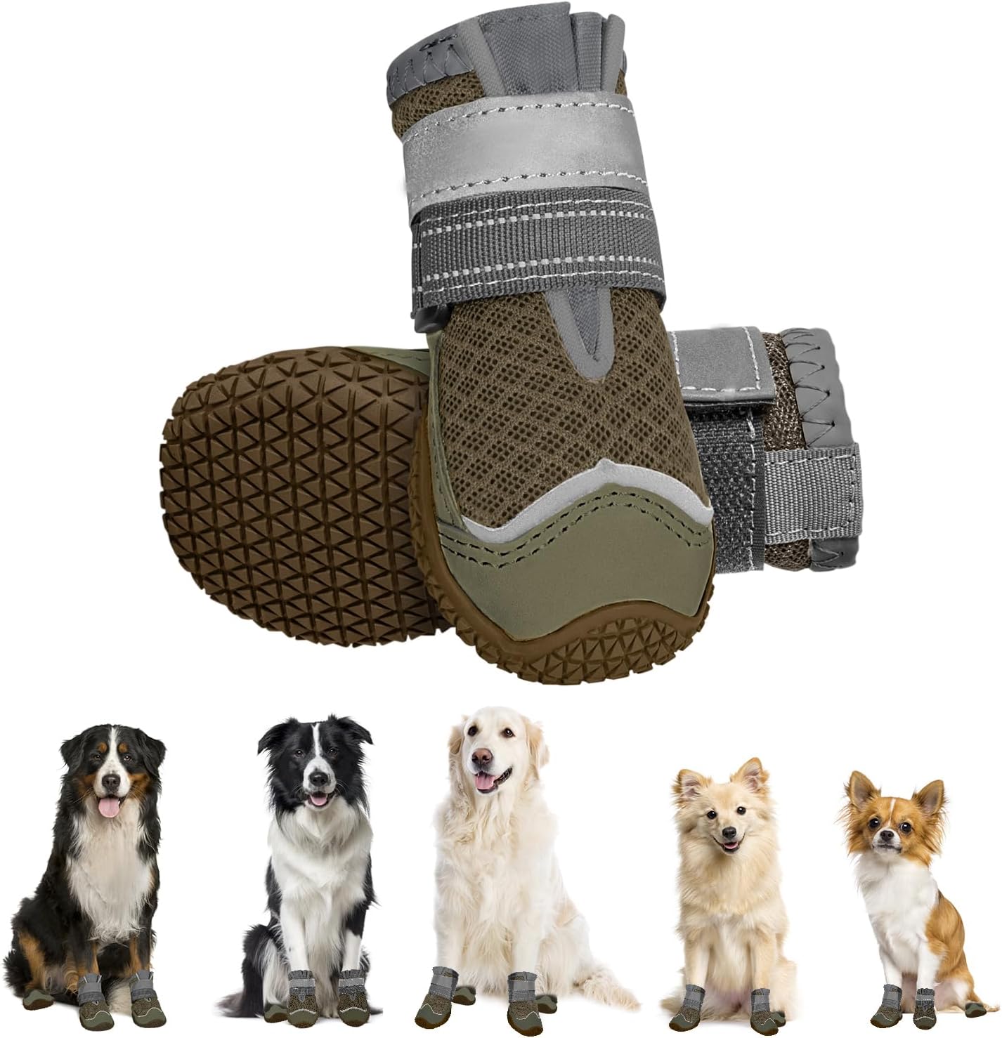 Обувки за кучета, Защита на лапите, Комплект от 2 дишащи обувки за кучета с нехлъзгаща се подметка и светлоотразително велкро закопчаване за малки, средни и големи кучета, Спортове на открито, Тъмно сиви, Размер 5
