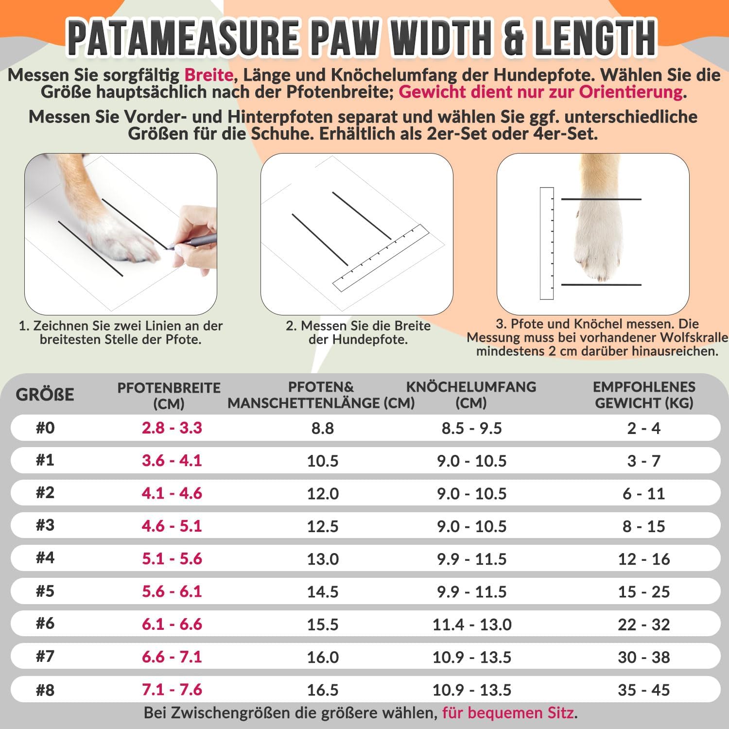 • Опции за множество размери - Предлагат се 9 размера (размер 0-8), от които да избирате. Нашите размери са базирани на вътрешния диаметър на обувката, моля, уверете се, че сте измерили внимателно ширината на лапите на вашето куче и след това вижте таблицата с размери на снимката. Можете да изберете правилния размер за вашето куче, за да се чувства комфортно.