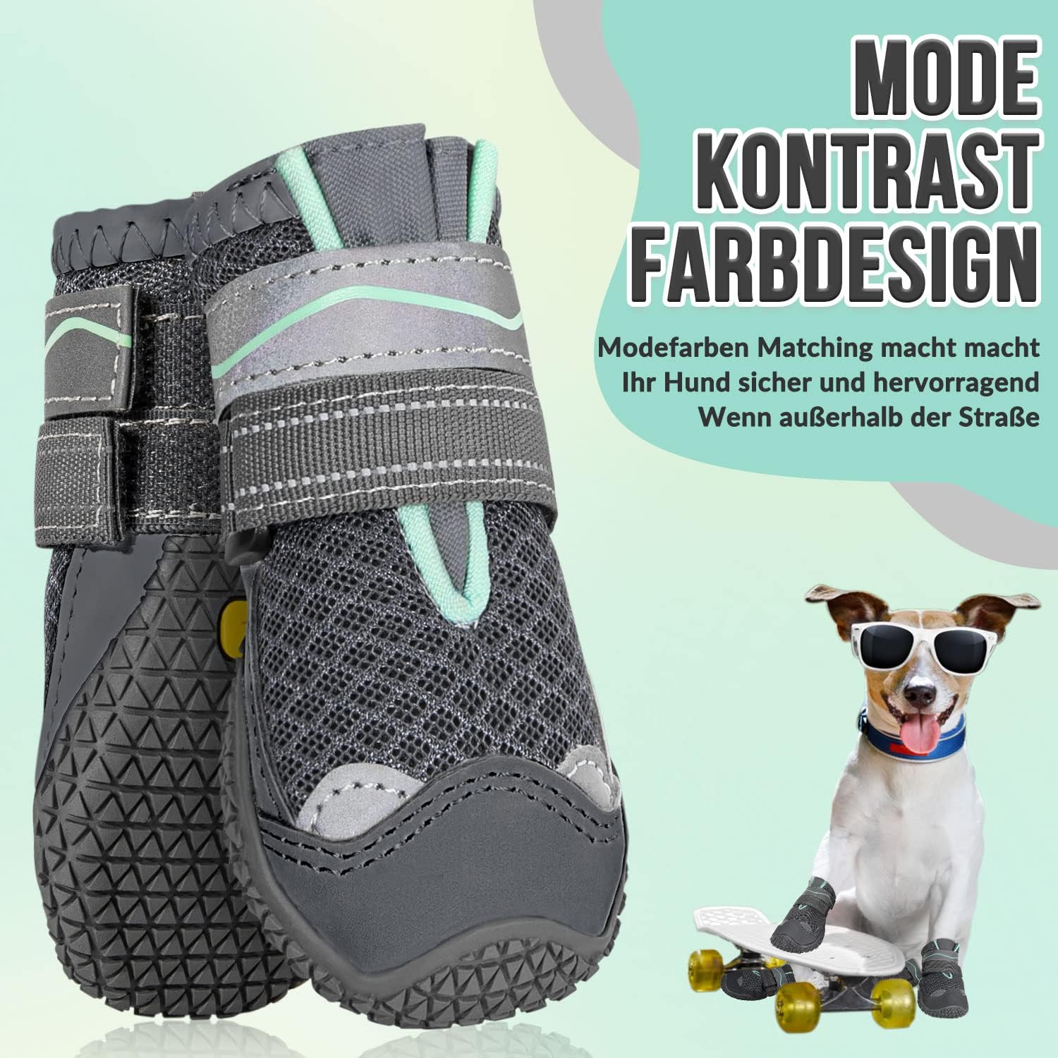 • Неплъзгаща се и издръжлива подметка: Неплъзгащият се дизайн на подметката осигурява отлична стабилност и сцепление за вашето куче. Меката гумена подметка и водоустойчивият кожен връх предпазват лапите на вашето куче от остри тръни, гореща настилка и едри частици сол в снежни дни.
