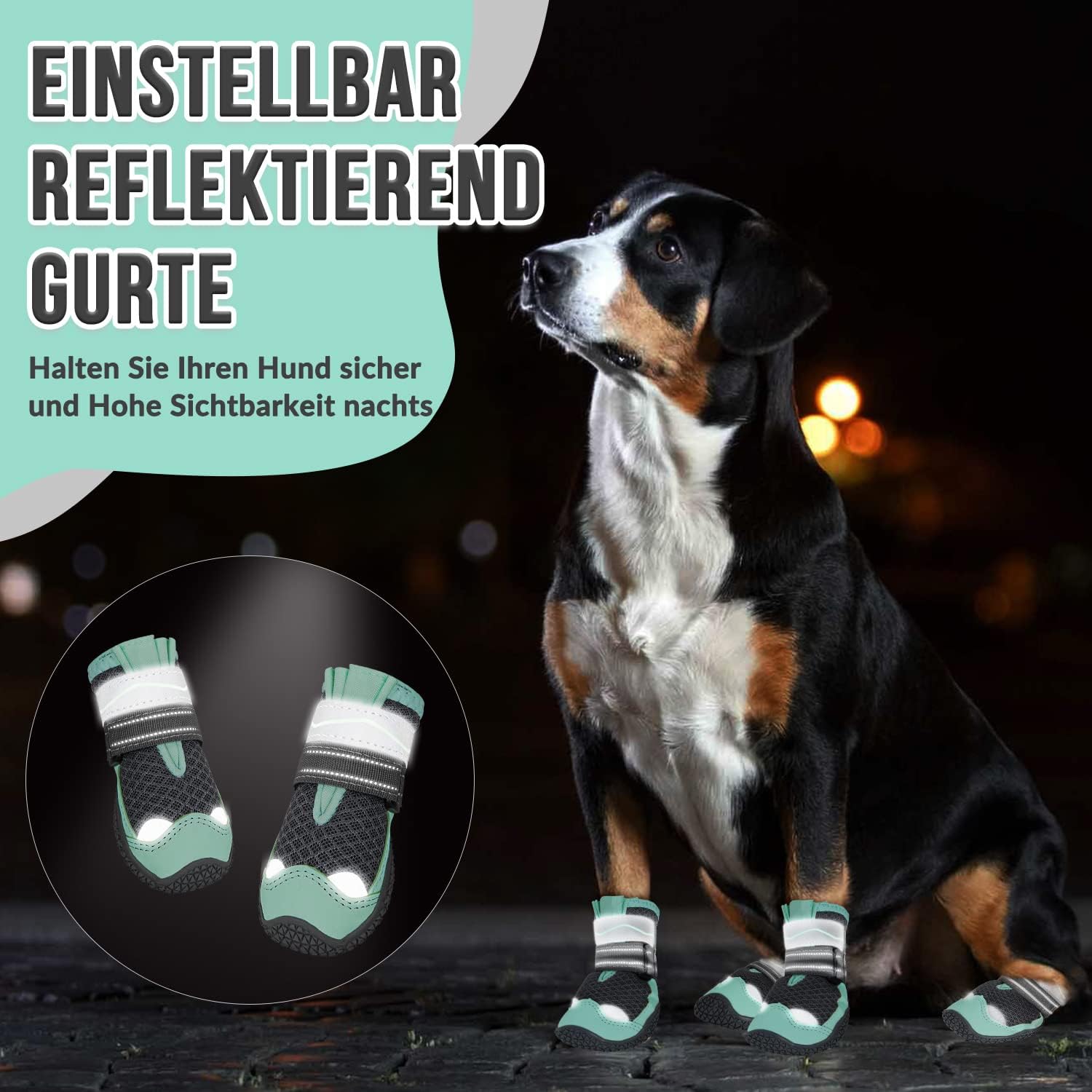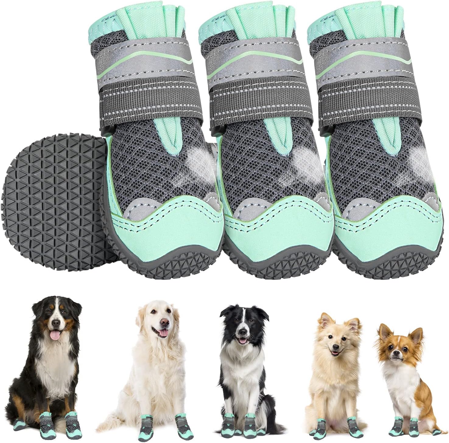 Обувки за кучета, Защита на лапите, Комплект от 4 дишащи обувки за кучета с неплъзгаща се подметка и светлоотразително велкро закопчаване за малки, средни и големи кучета, Спортове на открито, Зелени, Размер 6