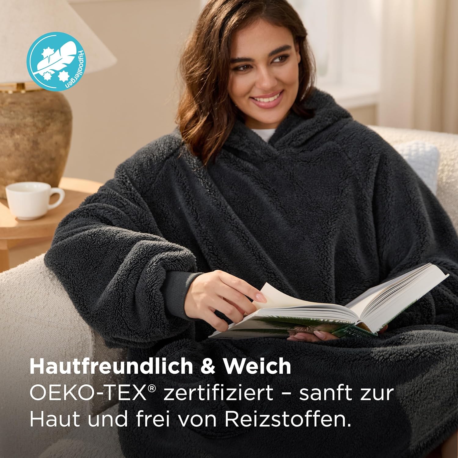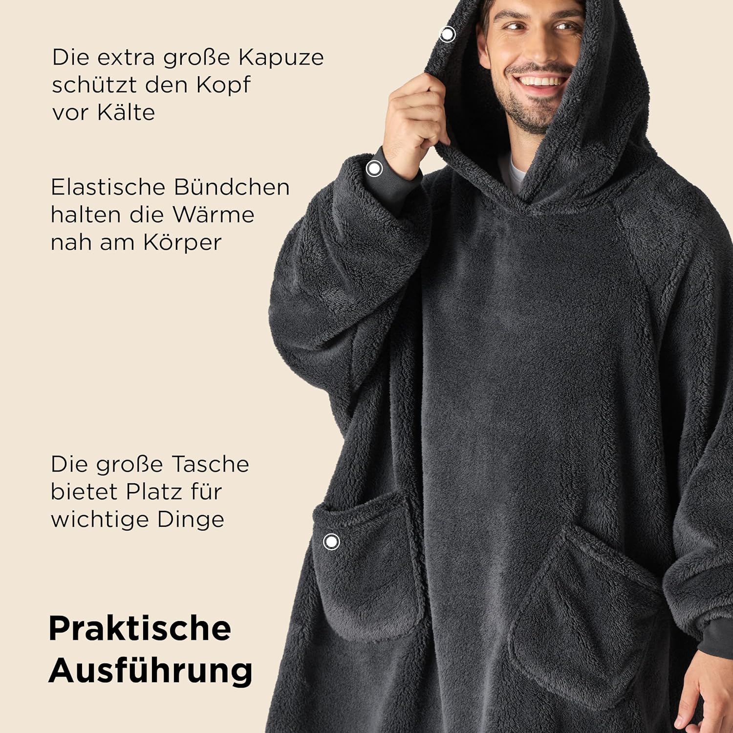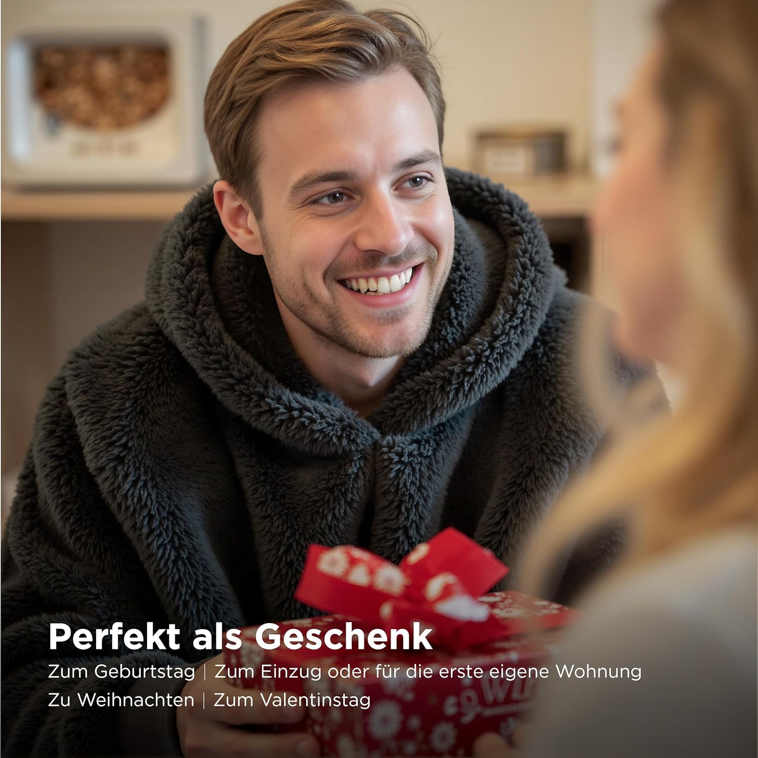 Почувствайте топлината в студените есенни или зимни дни, като се увиете в нашето меко и удобно одеяло с ръкави. Не се притеснявайте, че одеялото ще падне от рамото ви с ръкавите. Независимо дали сте на дивана, пред телевизора или на бюрото, преносимото одеяло с практични ръкави е точното нещо за вас, без ръцете ви да замръзнат. Ако търсите супер меко и удобно за прегръщане одеяло за телевизор, тогава купете без колебание нашето меко одеяло Bedsure с ръкави XXL.