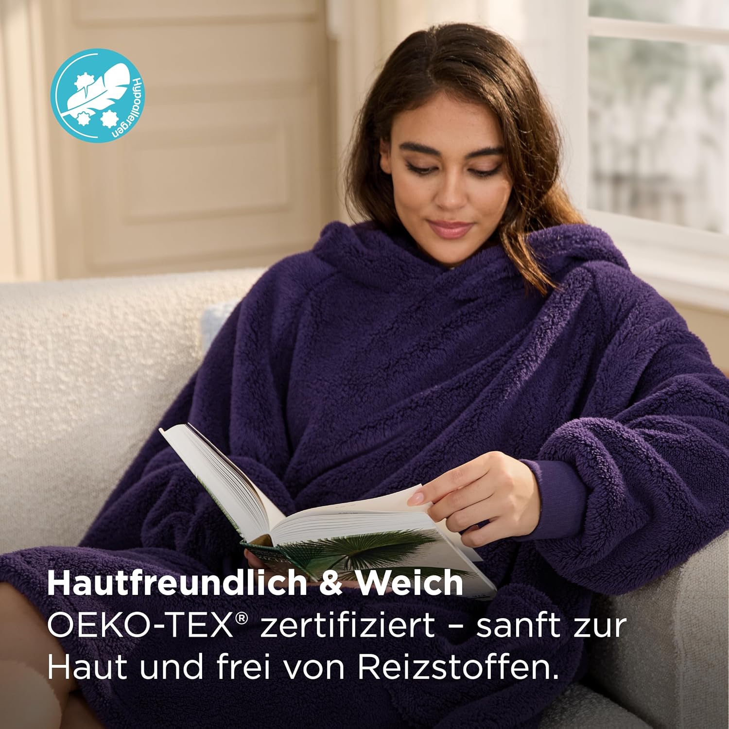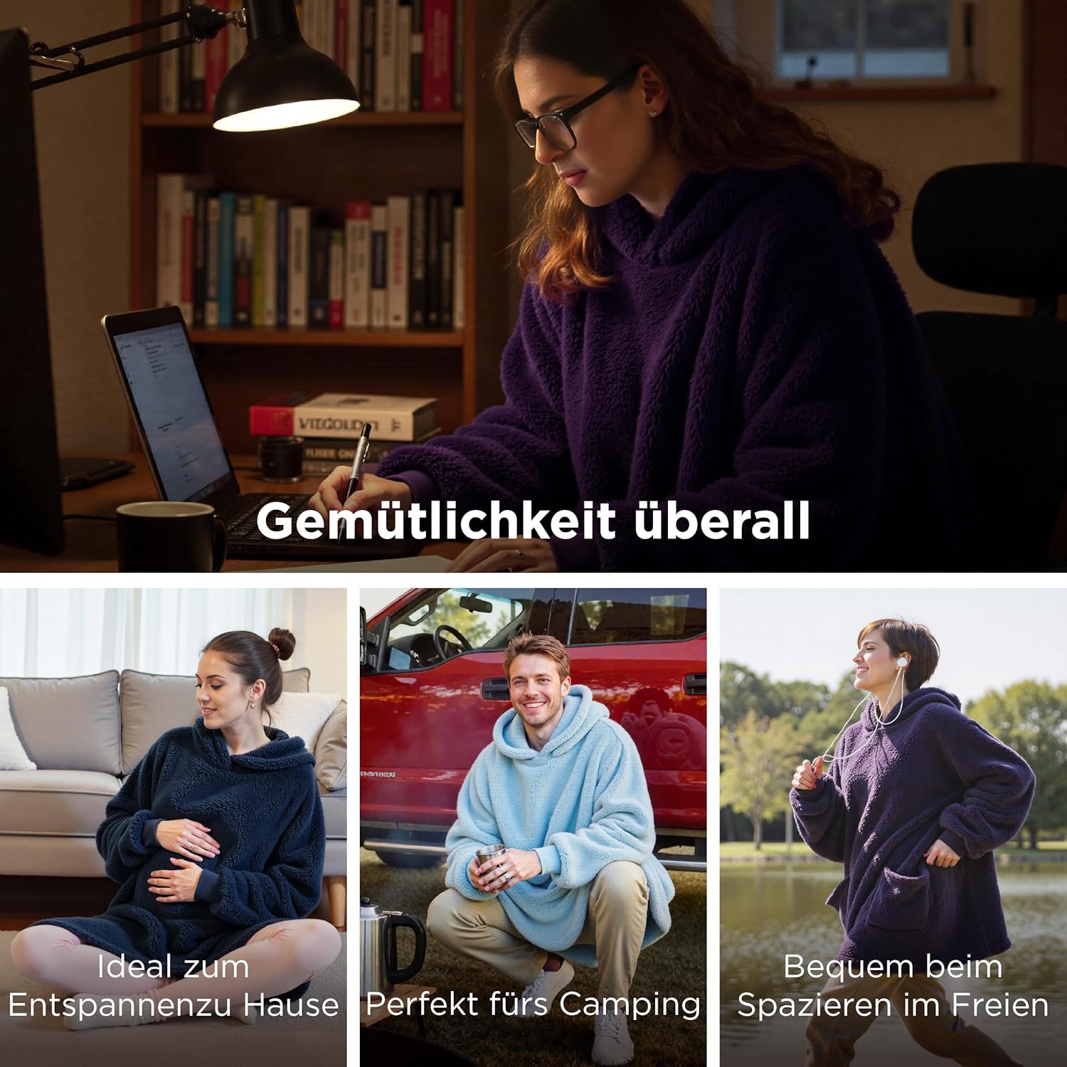 Почувствайте топлината в студените есенни или зимни дни, като се увиете в нашето меко и удобно одеяло с ръкави. Не се притеснявайте, че одеялото ще падне от рамото ви с ръкавите. Независимо дали сте на дивана, пред телевизора или на бюрото, преносимото одеяло с практични ръкави е точното нещо за вас, без ръцете ви да замръзнат. Ако търсите супер меко и удобно за прегръщане одеяло за телевизор, тогава купете без колебание нашето меко одеяло Bedsure с ръкави XXL.