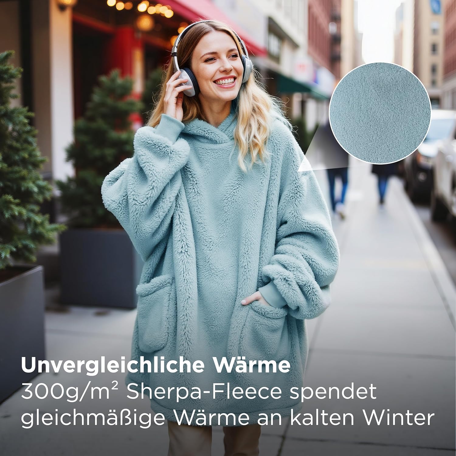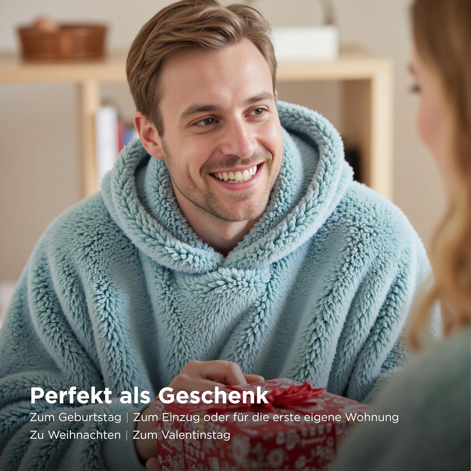 Почувствайте топлината в студените есенни или зимни дни, като се увиете в нашето меко и удобно одеяло с ръкави. Не се притеснявайте, че одеялото ще падне от рамото ви с ръкавите. Независимо дали сте на дивана, пред телевизора или на бюрото, преносимото одеяло с практични ръкави е точното нещо за вас, без ръцете ви да замръзнат. Ако търсите супер меко и удобно за прегръщане одеяло за телевизор, тогава купете без колебание нашето меко одеяло Bedsure с ръкави XXL.