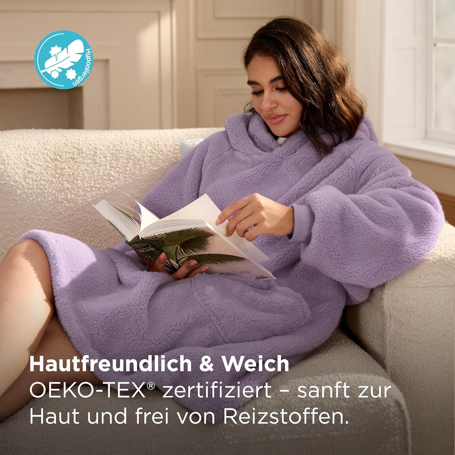 Почувствайте топлината в студените есенни или зимни дни, като се увиете в нашето меко и удобно одеяло с ръкави. Не се притеснявайте, че одеялото ще падне от рамото ви с ръкавите. Независимо дали сте на дивана, пред телевизора или на бюрото, преносимото одеяло с практични ръкави е точното нещо за вас, без ръцете ви да замръзнат. Ако търсите супер меко и удобно за прегръщане одеяло за телевизор, тогава купете без колебание нашето меко одеяло Bedsure с ръкави XXL.