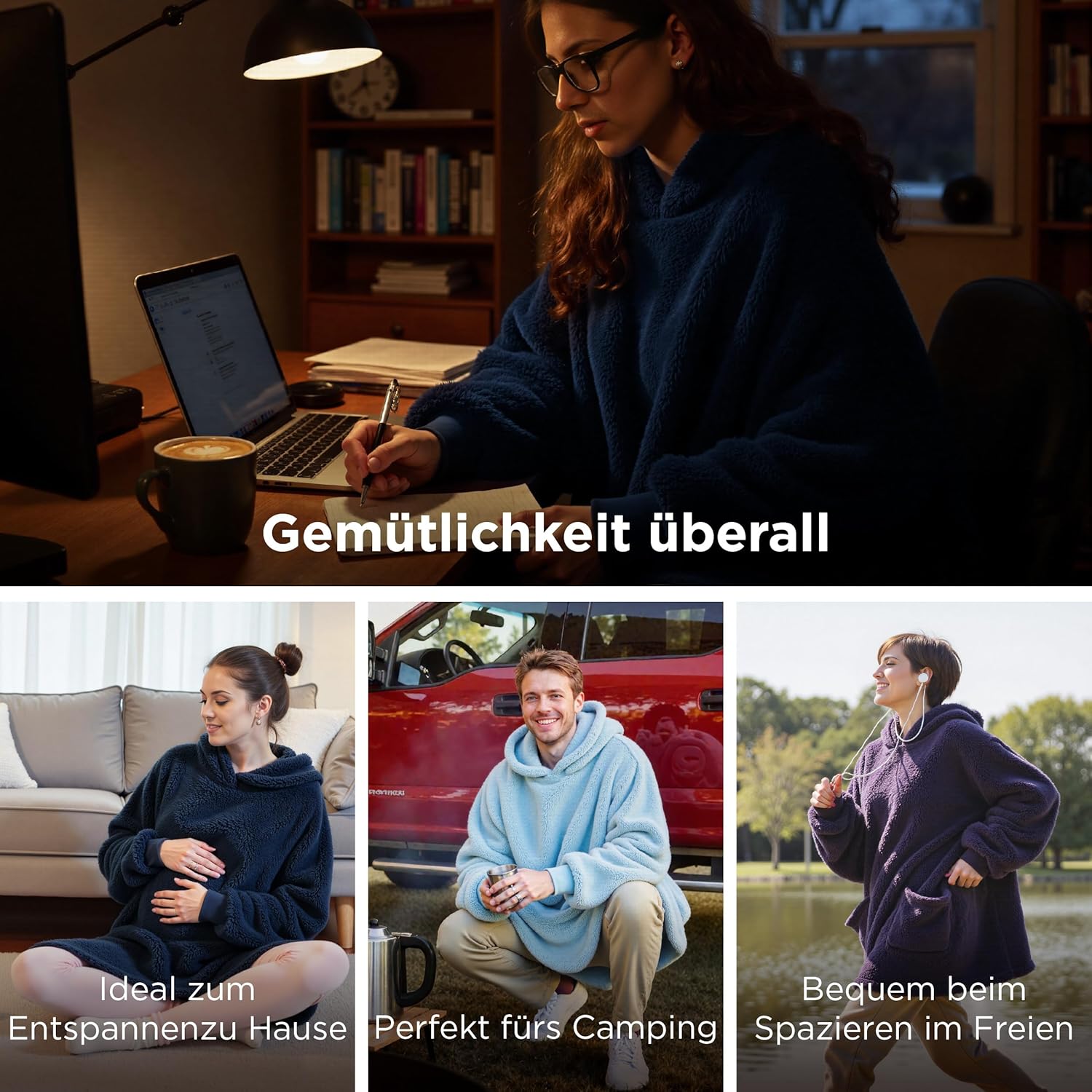 Почувствайте топлината в студените есенни или зимни дни, като се увиете в нашето меко и удобно одеяло с ръкави. Не се притеснявайте, че одеялото ще падне от рамото ви с ръкавите. Независимо дали сте на дивана, пред телевизора или на бюрото, преносимото одеяло с практични ръкави е точното нещо за вас, без ръцете ви да замръзнат. Ако търсите супер меко и удобно за прегръщане одеяло за телевизор, тогава купете без колебание нашето меко одеяло Bedsure с ръкави XXL.
