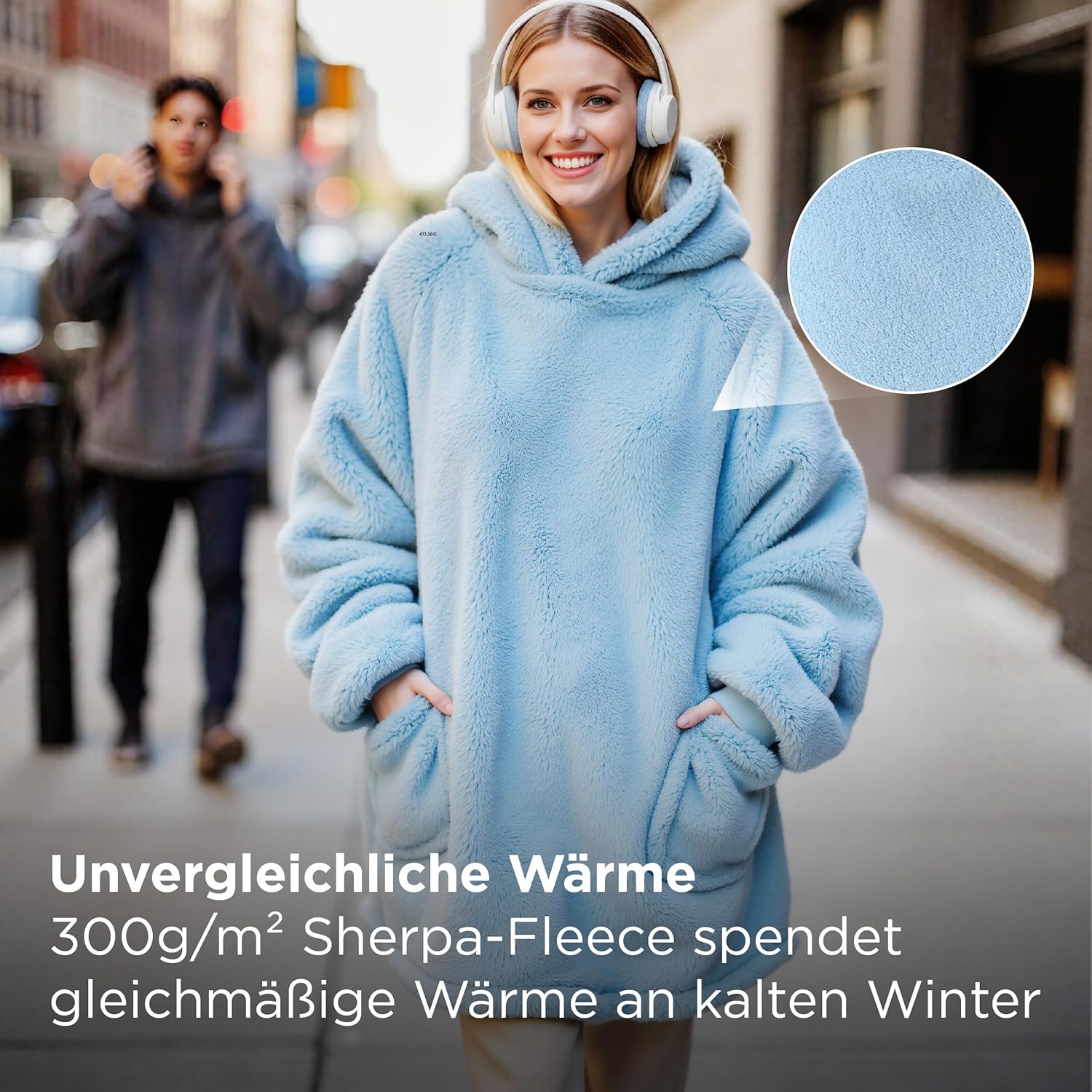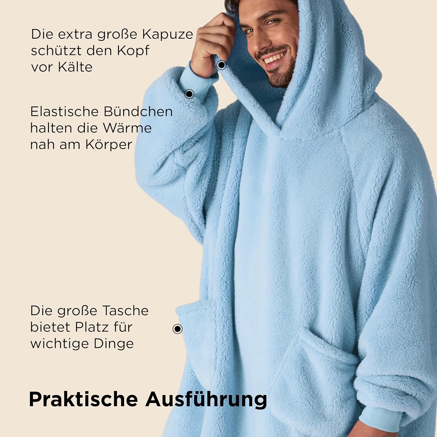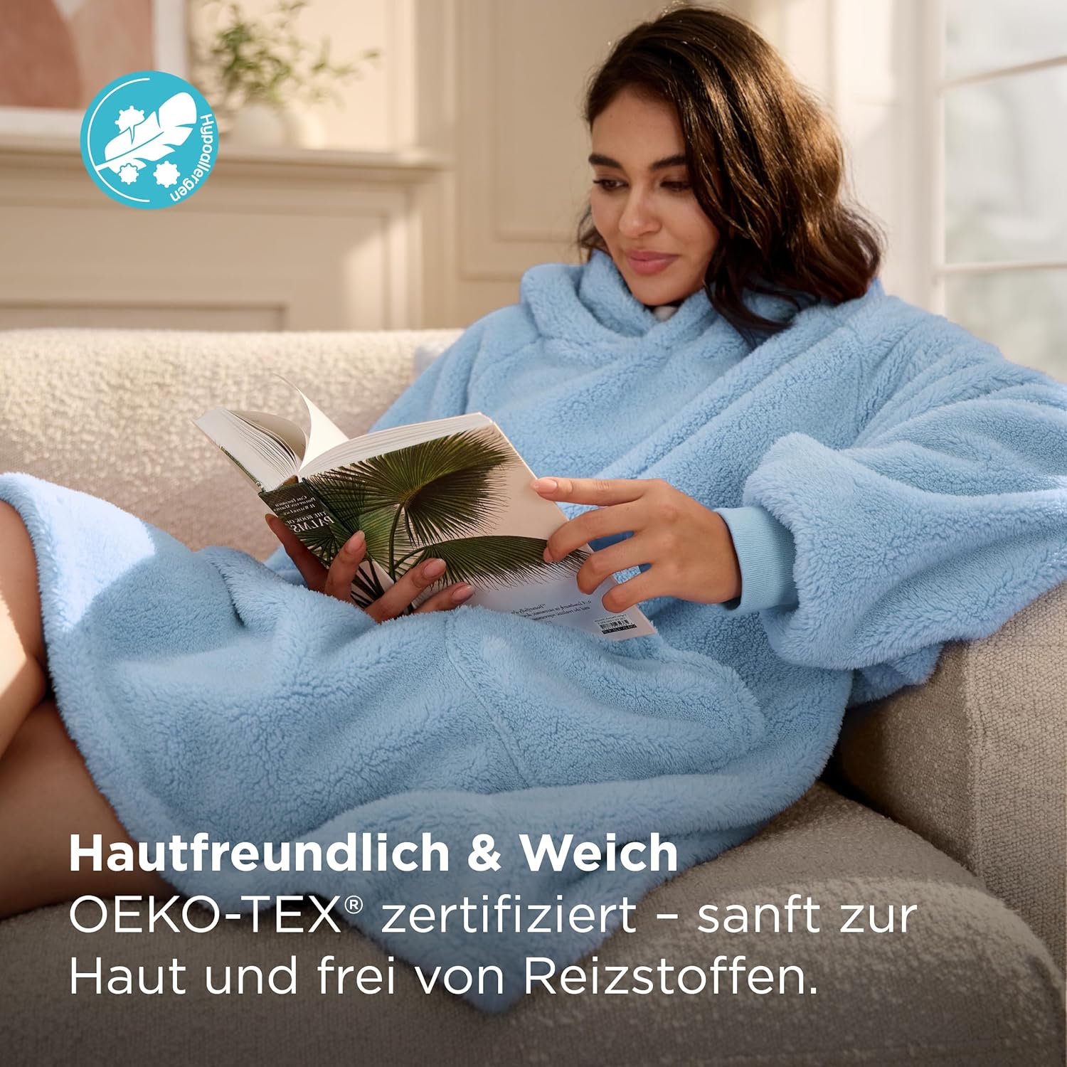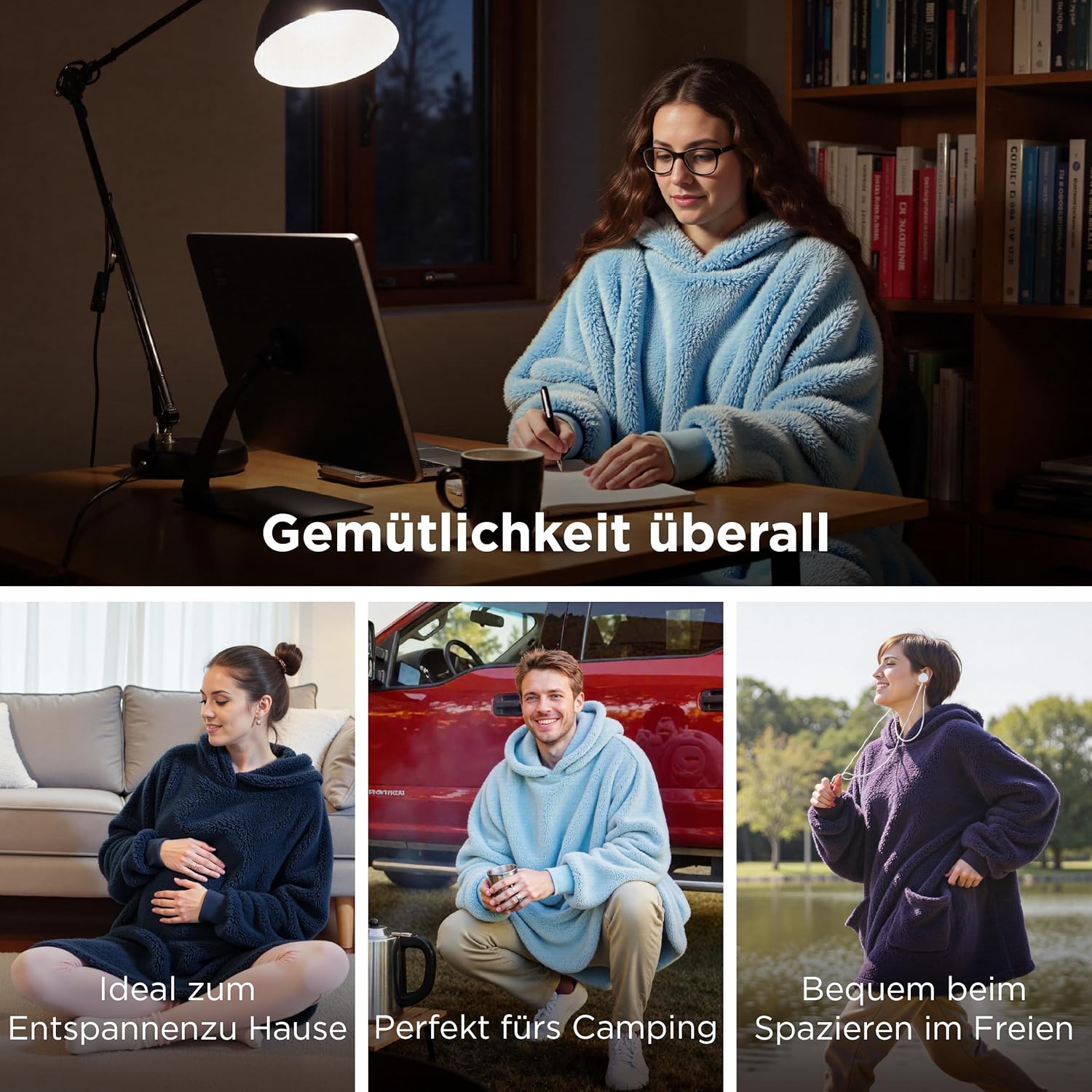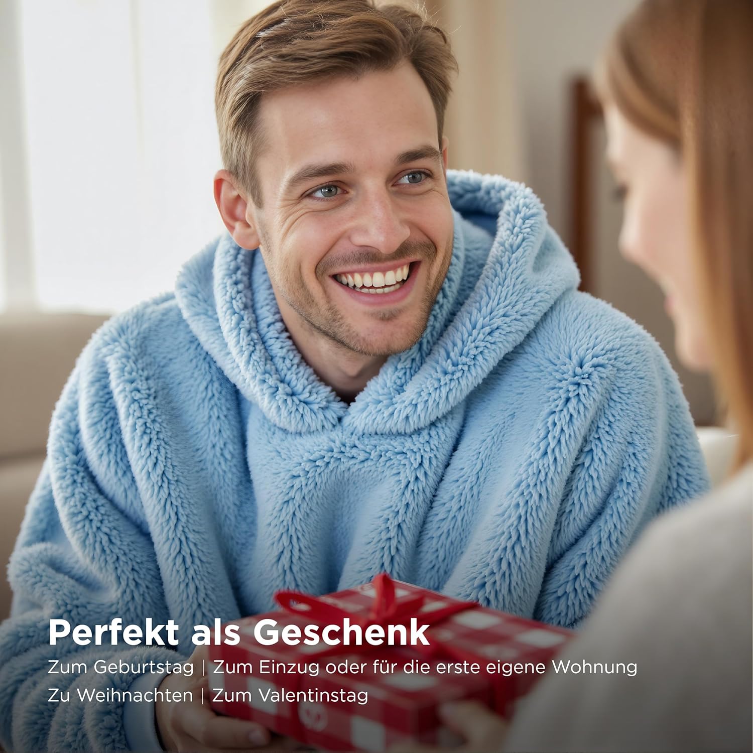 Почувствайте топлината в студените есенни или зимни дни, като се увиете в нашето меко и удобно одеяло с ръкави. Не се притеснявайте, че одеялото ще падне от рамото ви с ръкавите. Независимо дали сте на дивана, пред телевизора или на бюрото, преносимото одеяло с практични ръкави е точното нещо за вас, без ръцете ви да замръзнат. Ако търсите супер меко и удобно за прегръщане одеяло за телевизор, тогава купете без колебание нашето меко одеяло Bedsure с ръкави XXL.