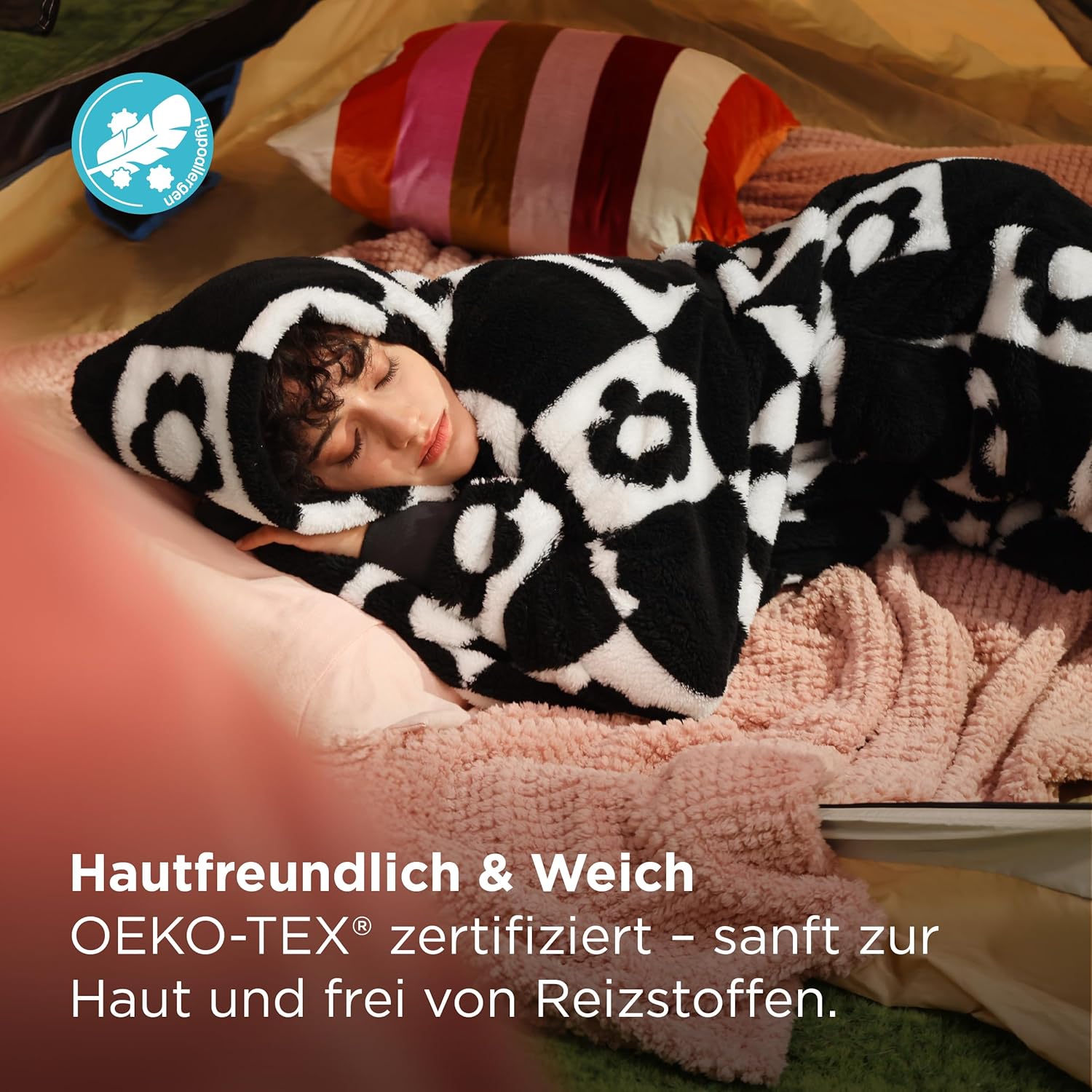 Почувствайте топлината в студените есенни или зимни дни, като се увиете в нашето меко и удобно одеяло с ръкави. Не се притеснявайте, че одеялото ще падне от рамото ви с ръкавите. Независимо дали сте на дивана, пред телевизора или на бюрото, преносимото одеяло с практични ръкави е точното нещо за вас, без ръцете ви да замръзнат. Ако търсите супер меко и удобно за прегръщане одеяло за телевизор, тогава купете без колебание нашето меко одеяло Bedsure с ръкави XXL.