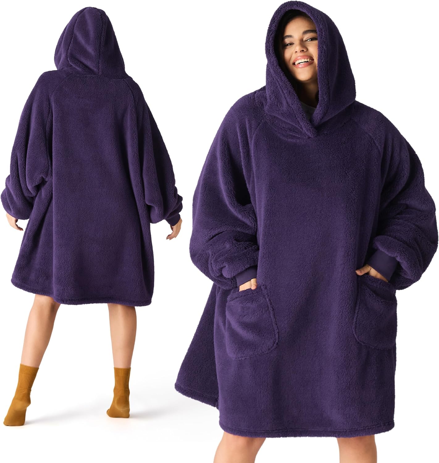 Почувствайте топлината в студените есенни или зимни дни, като се увиете в нашето меко и удобно одеяло с ръкави. Не се притеснявайте, че одеялото ще падне от рамото ви с ръкавите. Независимо дали сте на дивана, пред телевизора или на бюрото, преносимото одеяло с практични ръкави е точното нещо за вас, без ръцете ви да замръзнат. Ако търсите супер меко и удобно за прегръщане одеяло за телевизор, тогава купете без колебание нашето меко одеяло Bedsure с ръкави XXL.