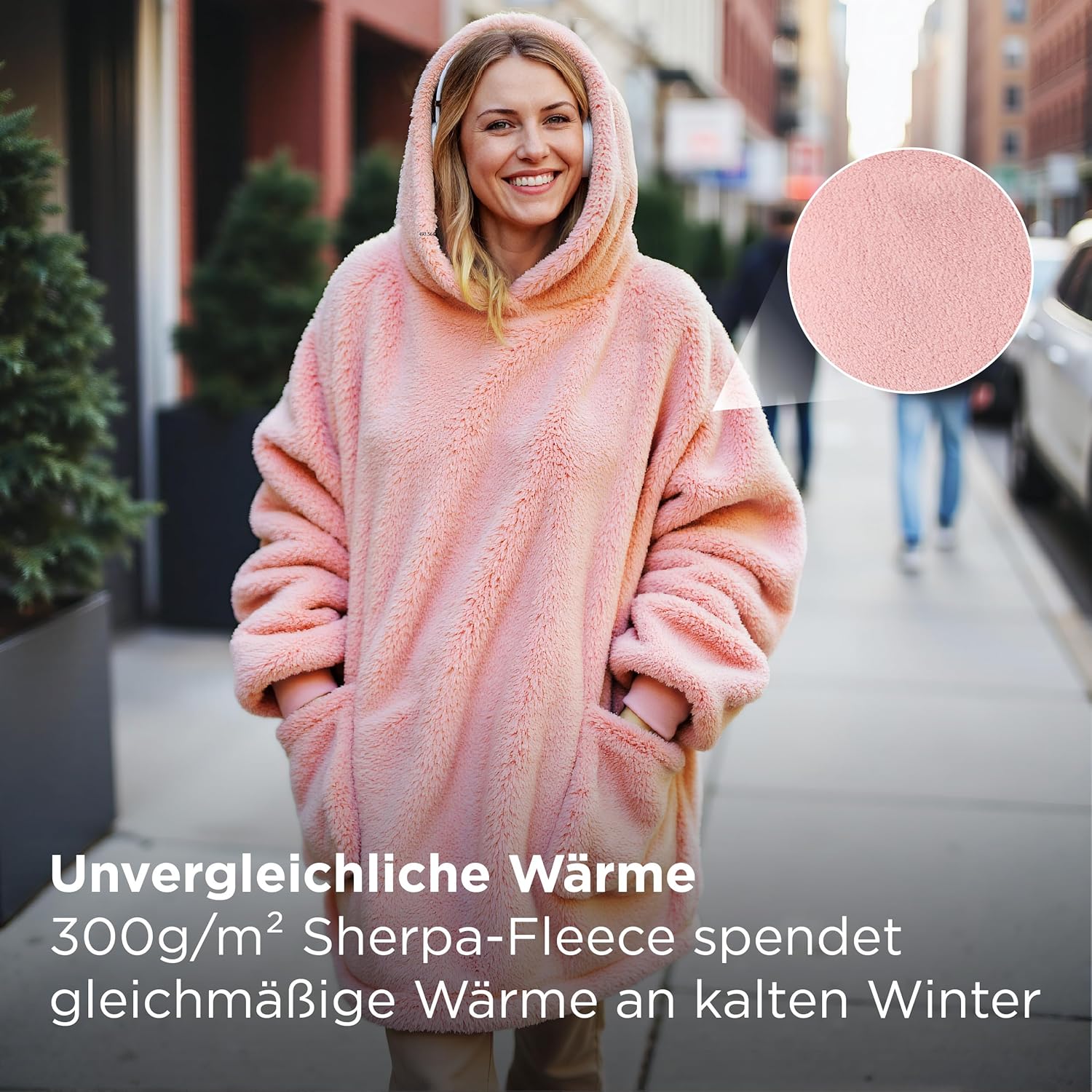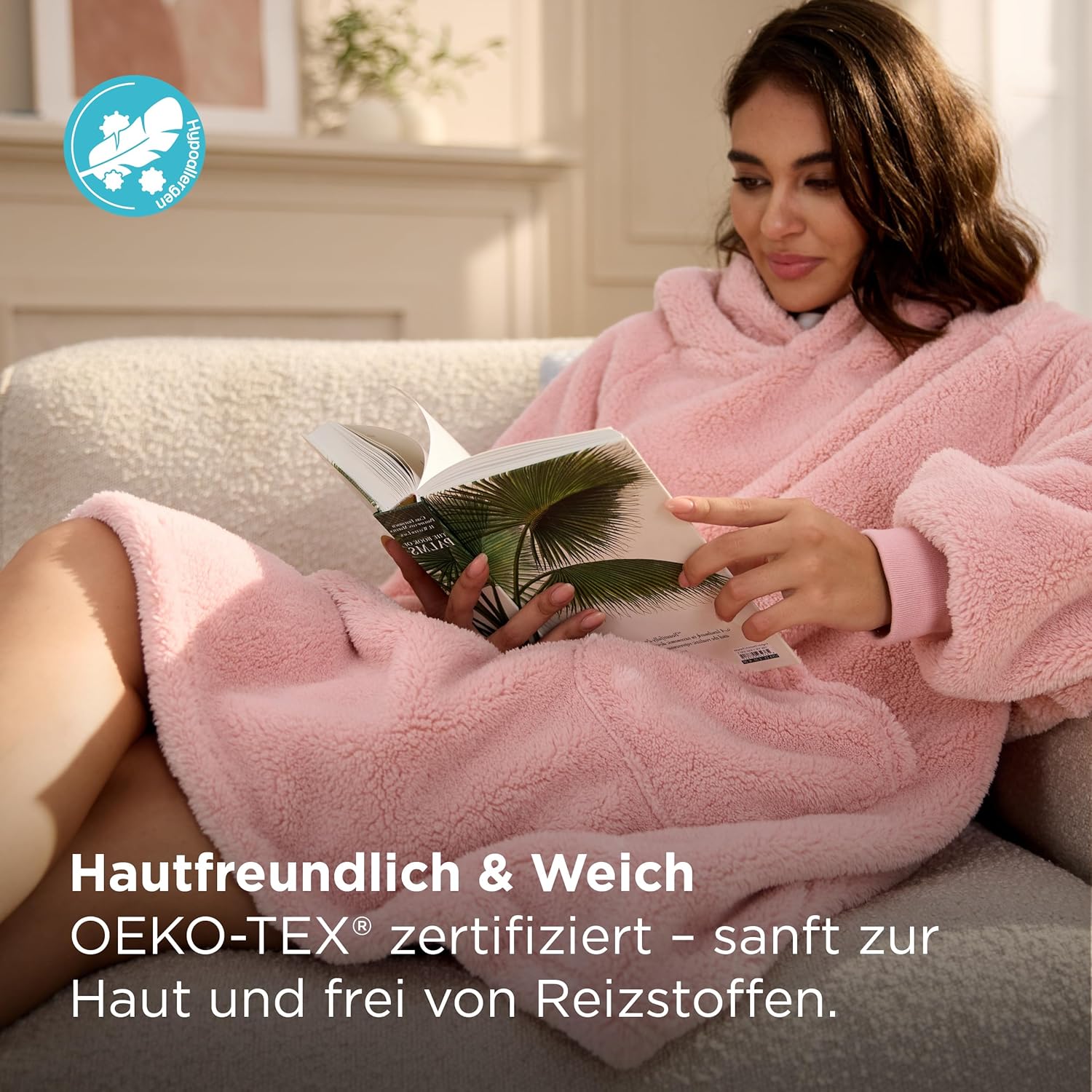Почувствайте топлината в студените есенни или зимни дни, като се увиете в нашето меко и удобно одеяло с ръкави. Не се притеснявайте, че одеялото ще падне от рамото ви с ръкавите. Независимо дали сте на дивана, пред телевизора или на бюрото, преносимото одеяло с практични ръкави е точното нещо за вас, без ръцете ви да замръзнат. Ако търсите супер меко и удобно за прегръщане одеяло за телевизор, тогава купете без колебание нашето меко одеяло Bedsure с ръкави XXL.