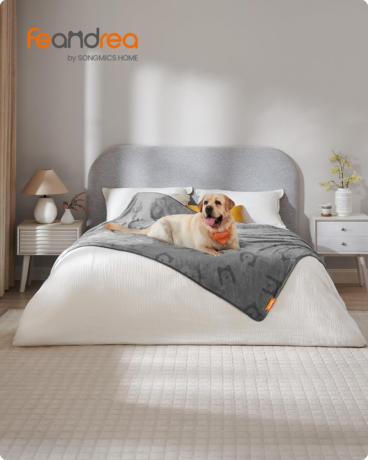 Одеяло за кучета Feandrea, което може да се пере, комплект от 3 одеяла за домашни любимци, XXL, 203 x 152 см, за големи и екстра големи кучета, фланел, защитно одеяло за диван, шистово сиво PPB016G01