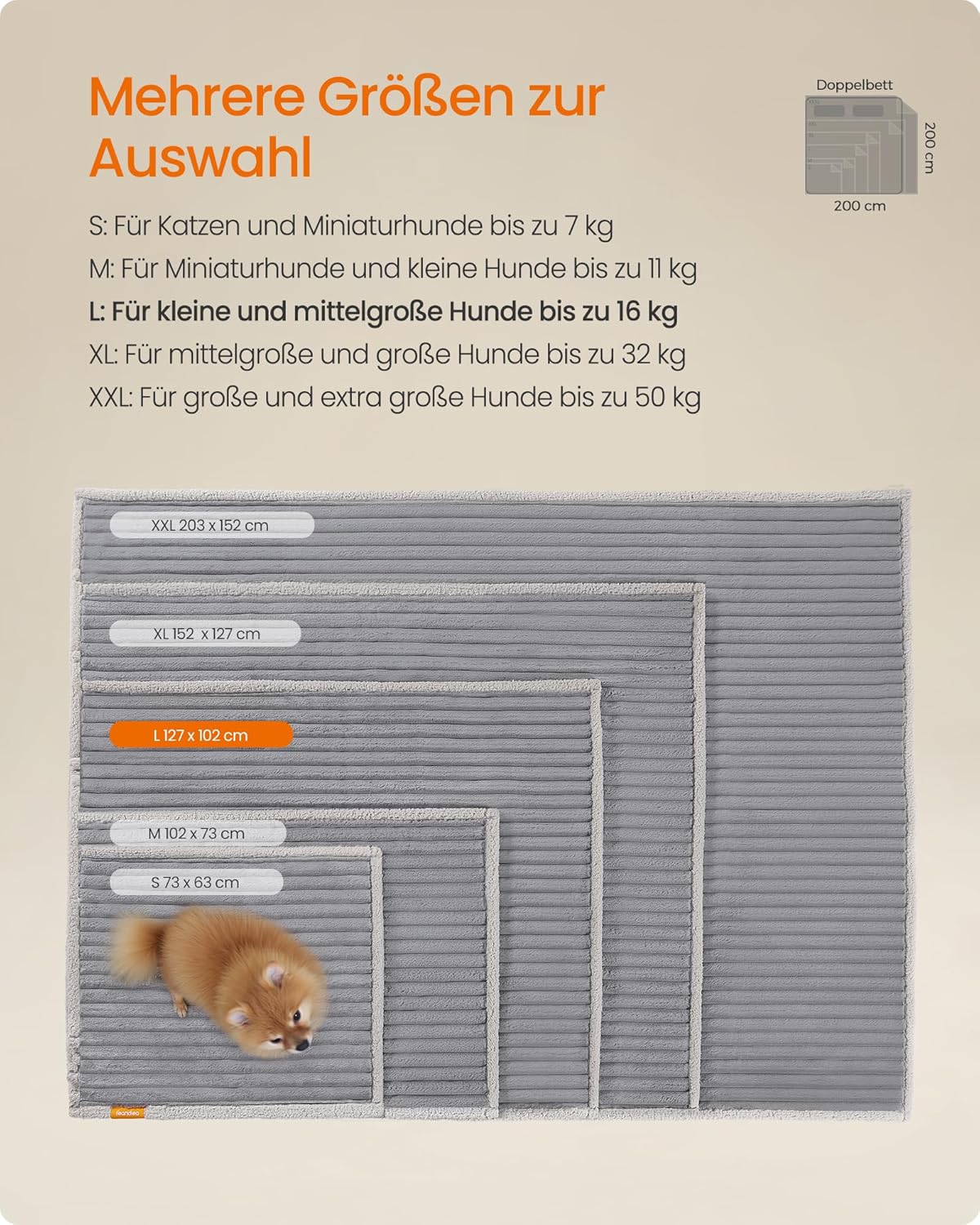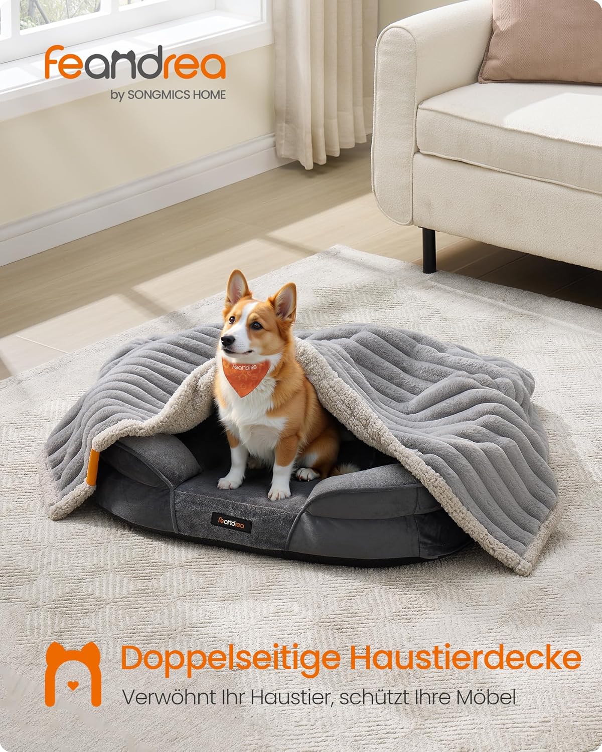 Едната страна е изработена от оребрена имитация на заешка кожа, а другата от шерпа плат. И двете предлагат на вашия домашен любимец успокояващ комфорт.