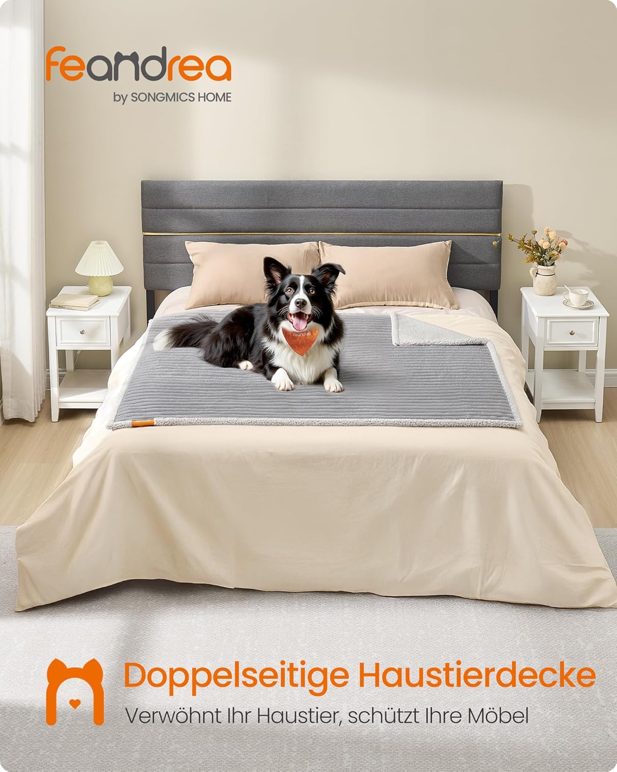Това меко и удобно водоустойчиво одеяло е с двустранен дизайн: едната страна е изработена от шерпа плат, а другата - от оребрена изкуствена заешка кожа. Това осигурява на вашия домашен любимец уютно място за спане. Водоустойчивата TPU подплата предотвратява проникването на течности, защитавайки мебелите ви. Може да се пере в пералня и е лесно за транспортиране, което го прави практично както за пътуване, така и за домашна употреба. Двустранният дизайн предлага на домашните любимци двоен комфорт и добавя нотка елегантност към вашето жизнено пространство.