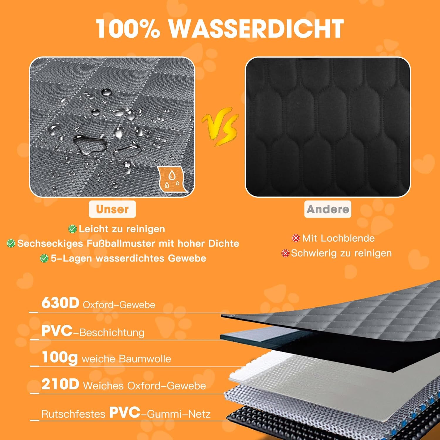 • 【100% водоустойчив, устойчив на надраскване и хлъзгане】: многослойна водоустойчива конструкция. Изработен от висококачествен, издръжлив водоустойчив материал за издръжливост и комфорт. Благодарение на нехлъзгащата се долна страна и закрепването на седалката, калъфът остава здраво закрепен дори при грубо каране. Притеснявате се от драскотини по кожените седалки или врати? Нашият подплатен калъф за седалка за кучета е напълно устойчив на надраскване и драскотини.