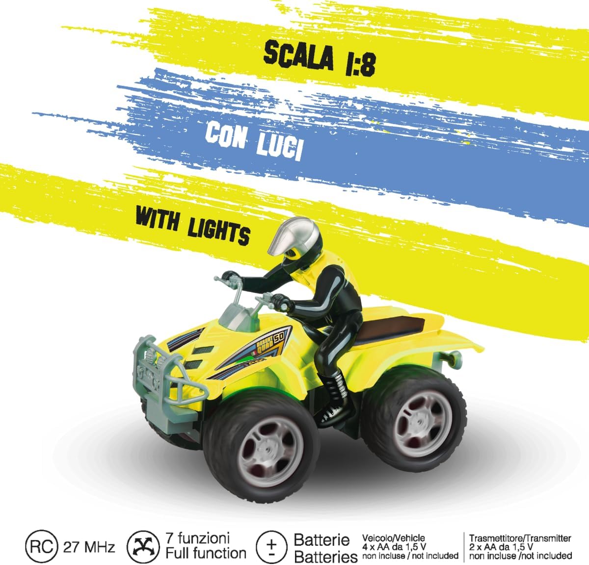 • Пакетът включва: пакетът съдържа Desert Quad, който е специално проектиран за деца в мащаб 1:8 с дистанционно управление. Чудесен подарък за млади, начинаещи шофьори.