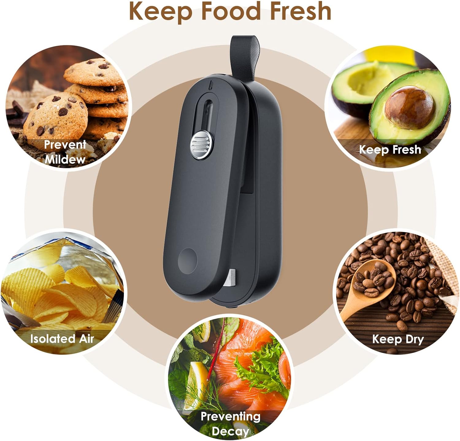 • Лесна употреба: Използвайте машината за термозапечатване на чипс/пликчета за закуски, когато не можете да ги изядете или ако искате да изядете само част от храната. Елате на място, след като децата са отворили закуската и не искат да я ядат. Просто я запечатайте за по-късно, а също така има и нож за отваряне.