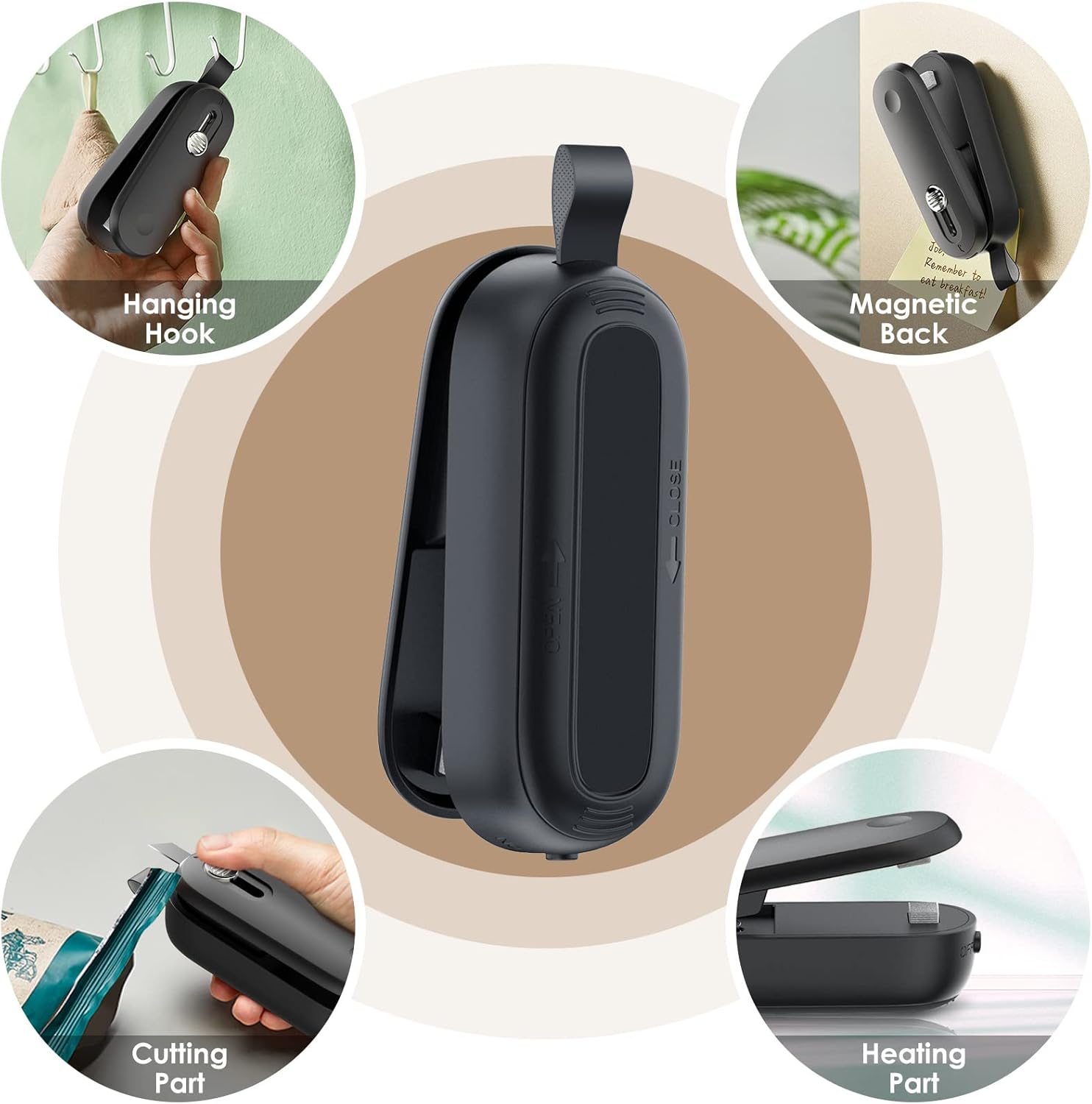 • 【Преносима и удобна】Вакуумната торбичка е малка и преносима, с магнитна лента и дизайн с връзка за връзка, можете лесно да я поставите в ръка или чанта си, или можете да я окачите на хладилника и всеки друг железен продукт или да я окачите на куката.