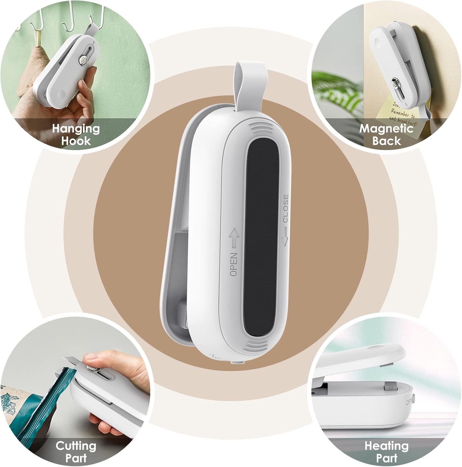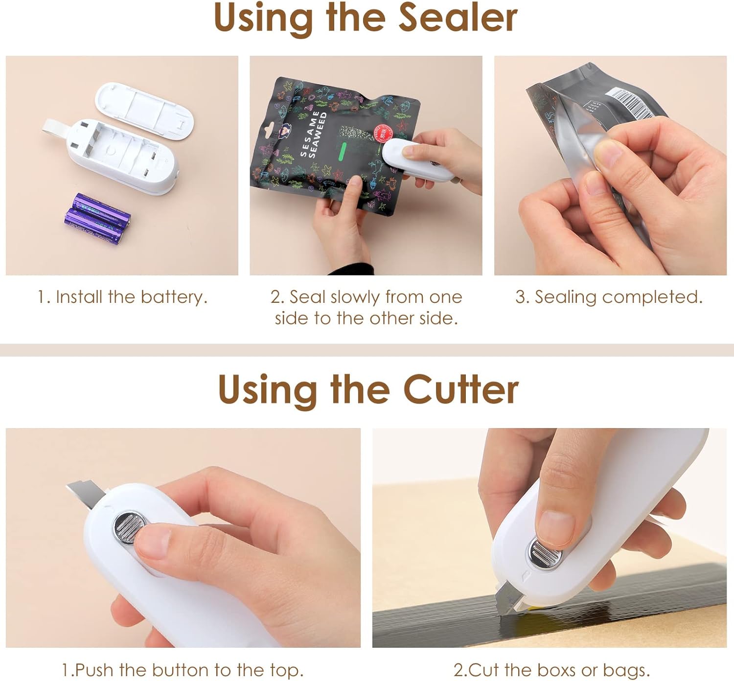 • 2 в 1: Мини апаратът за заваряване на фолио комбинира функции за запечатване и рязане в едно. Една глава за запечатване, една глава за рязане. (Батериите са включени)