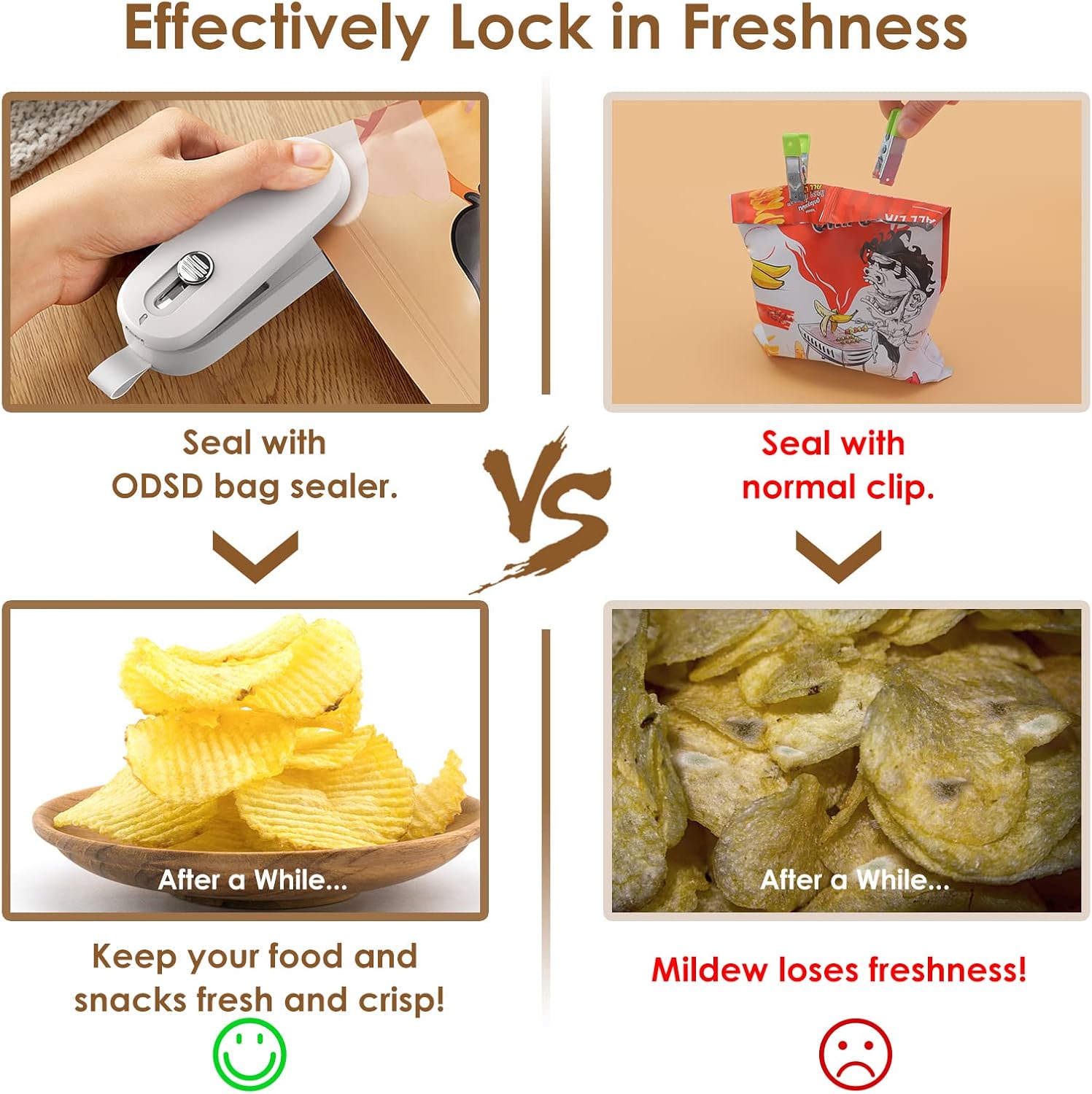 • Запазва храната свежа: Мини запечатването на торбичките ODSD осигурява добро запечатване, съдържанието остава херметично и предотвратява застоя му. Поддържайте храната си хрупкава и свежа с този термозапечатващ уред, който запечатва закуските ви чрез топлина. Определено препоръчвам да разширите кухненските си уреди.