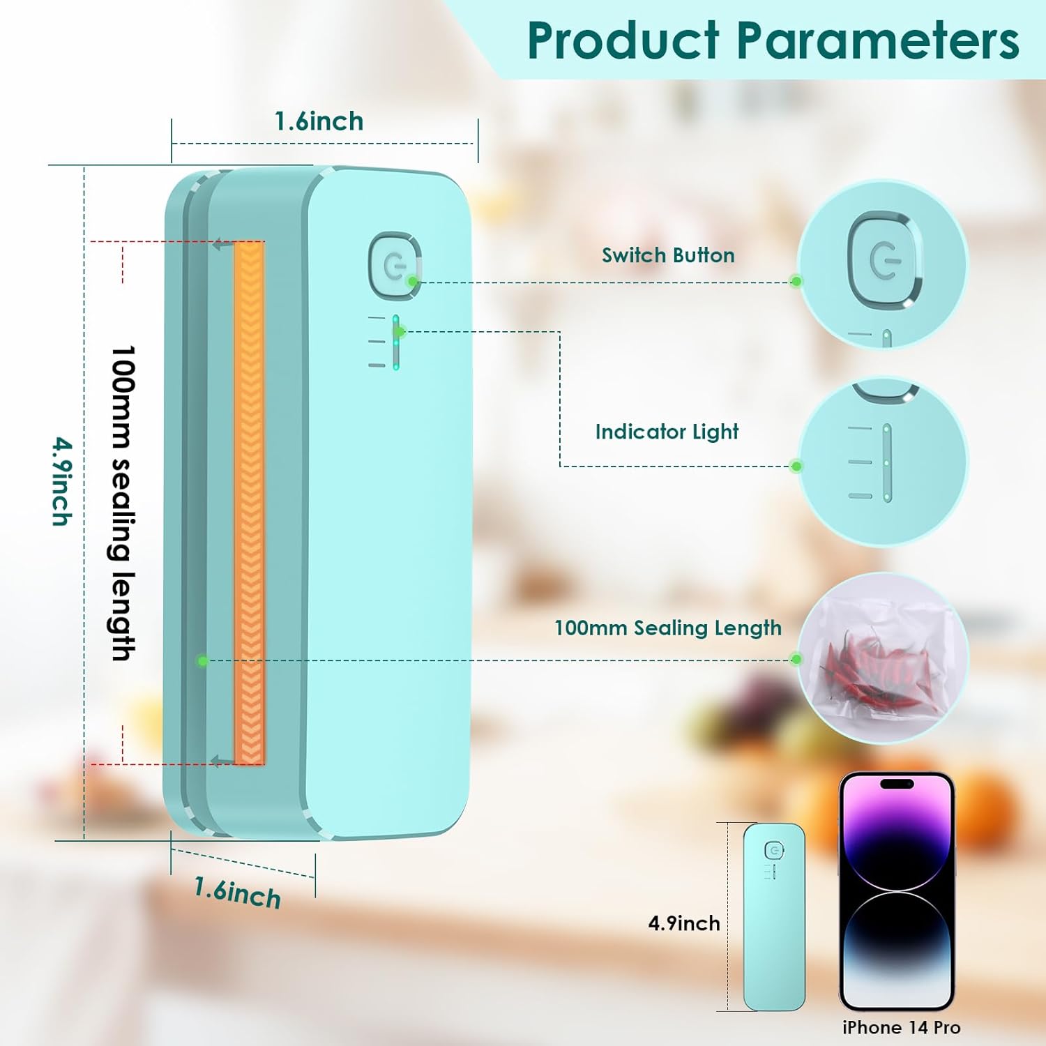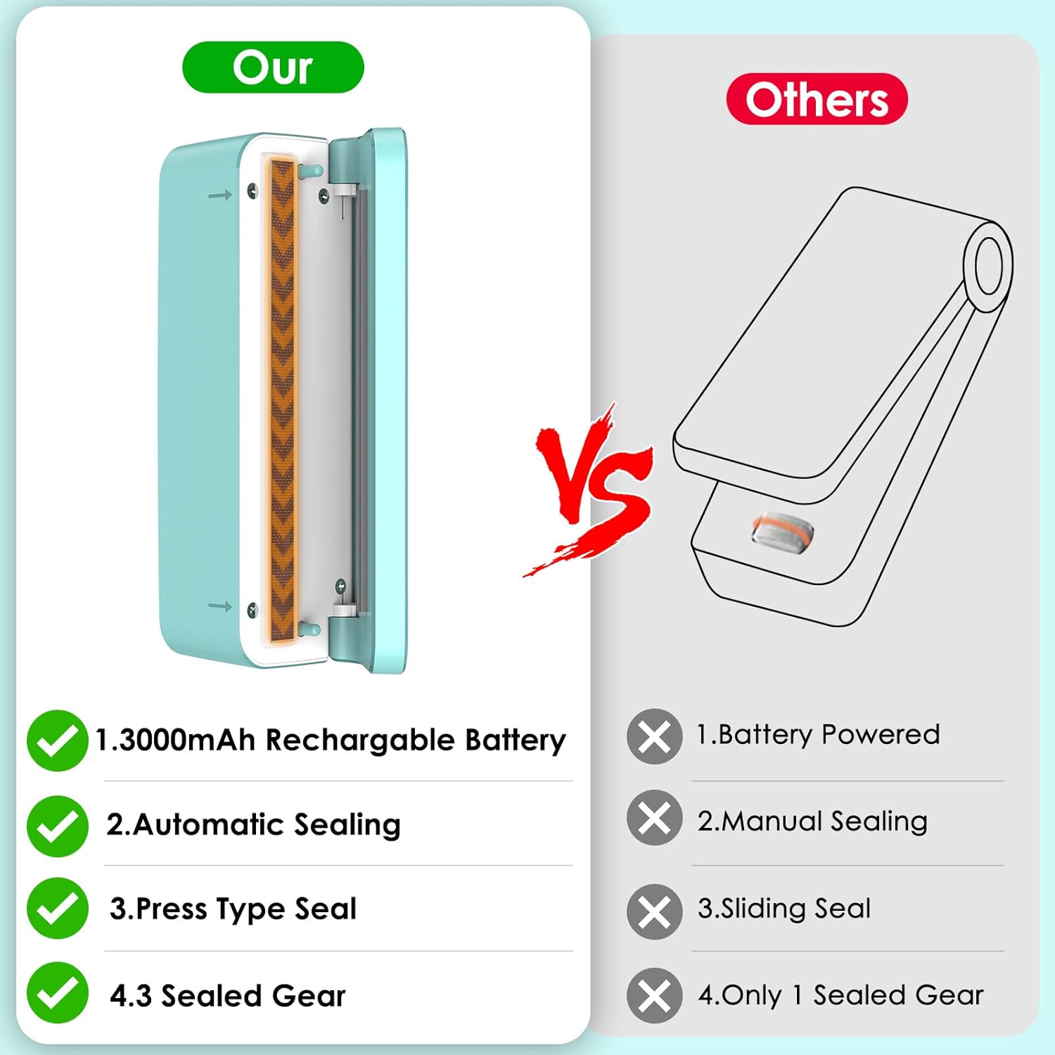 • 【ЗАПАЗЕТЕ ХРАНАТА СВЕЖА】: Ако в семейството ви са останали закуски или храна, навременното запечатване на торбичката може да помогне за запазване на храната свежа и да се избегне разхищението.