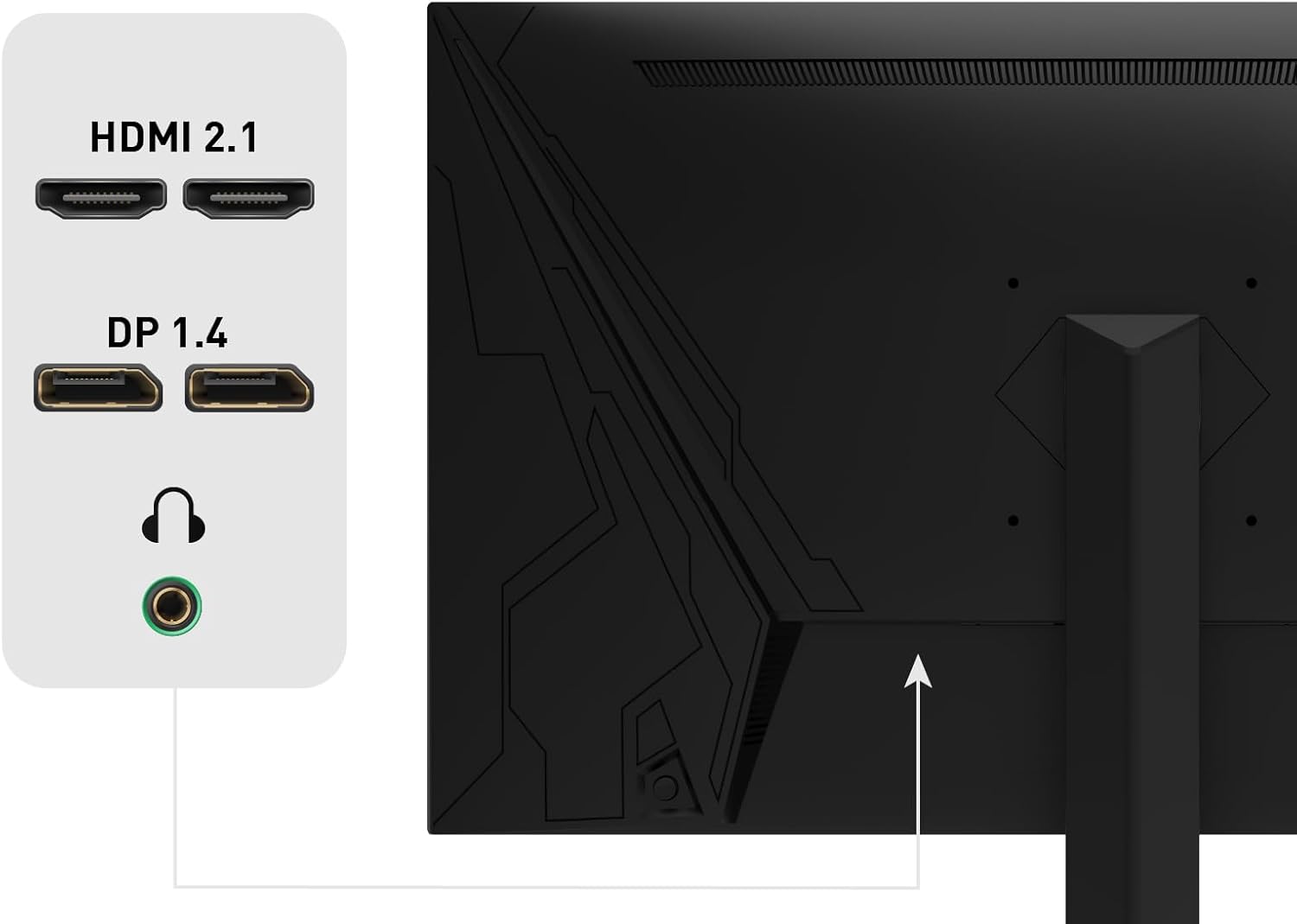 • Разнообразни опции за свързване - 2x HDMI 2.1, 2x DisplayPort 1.4, 1x 3.5 мм аудио порт