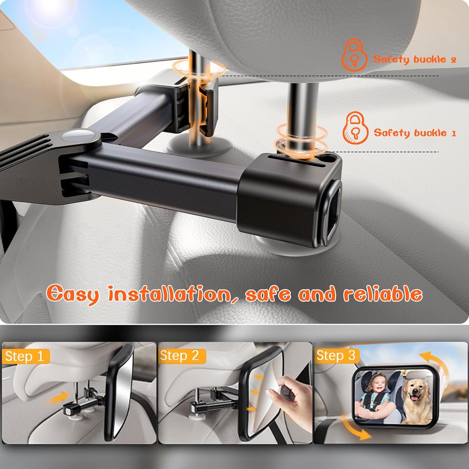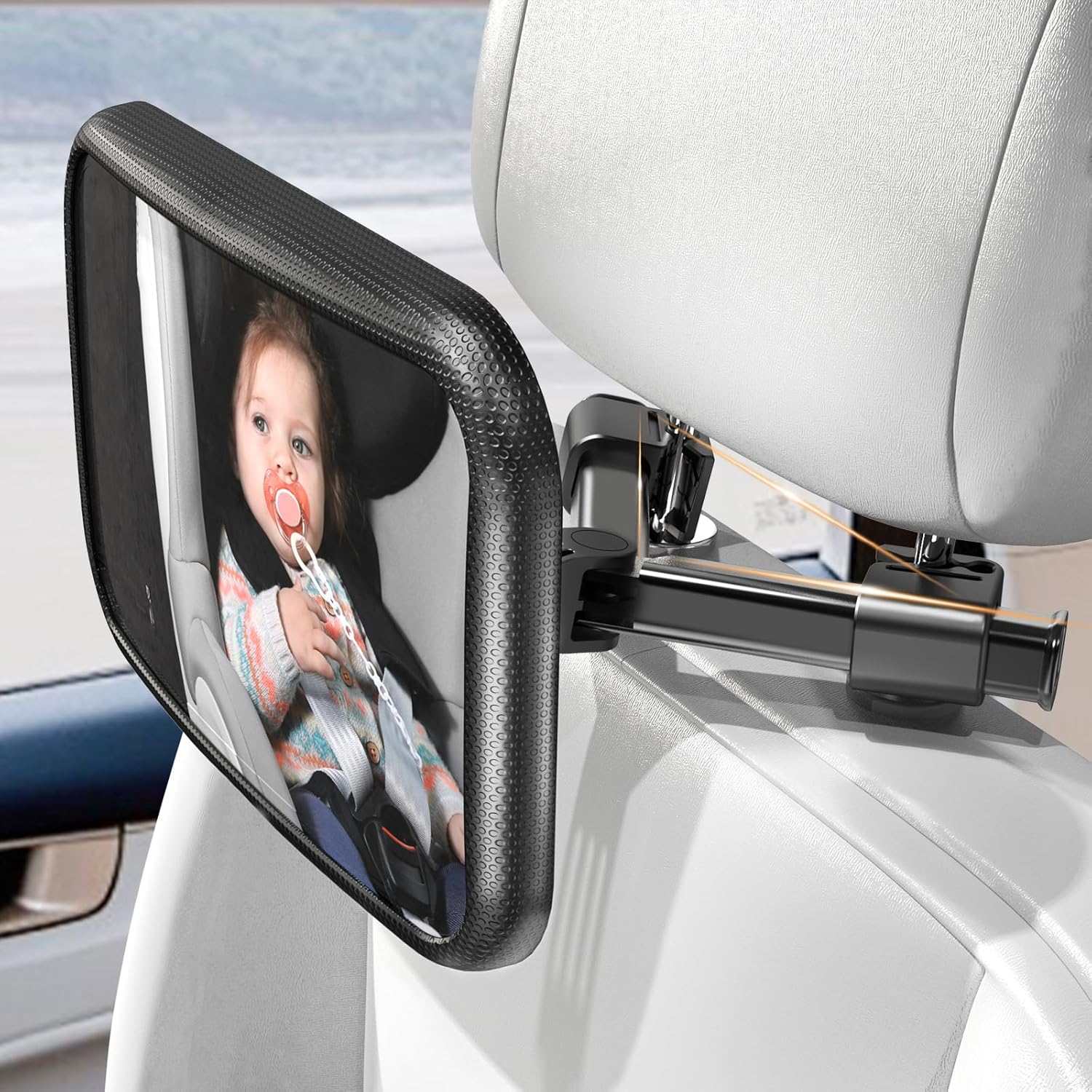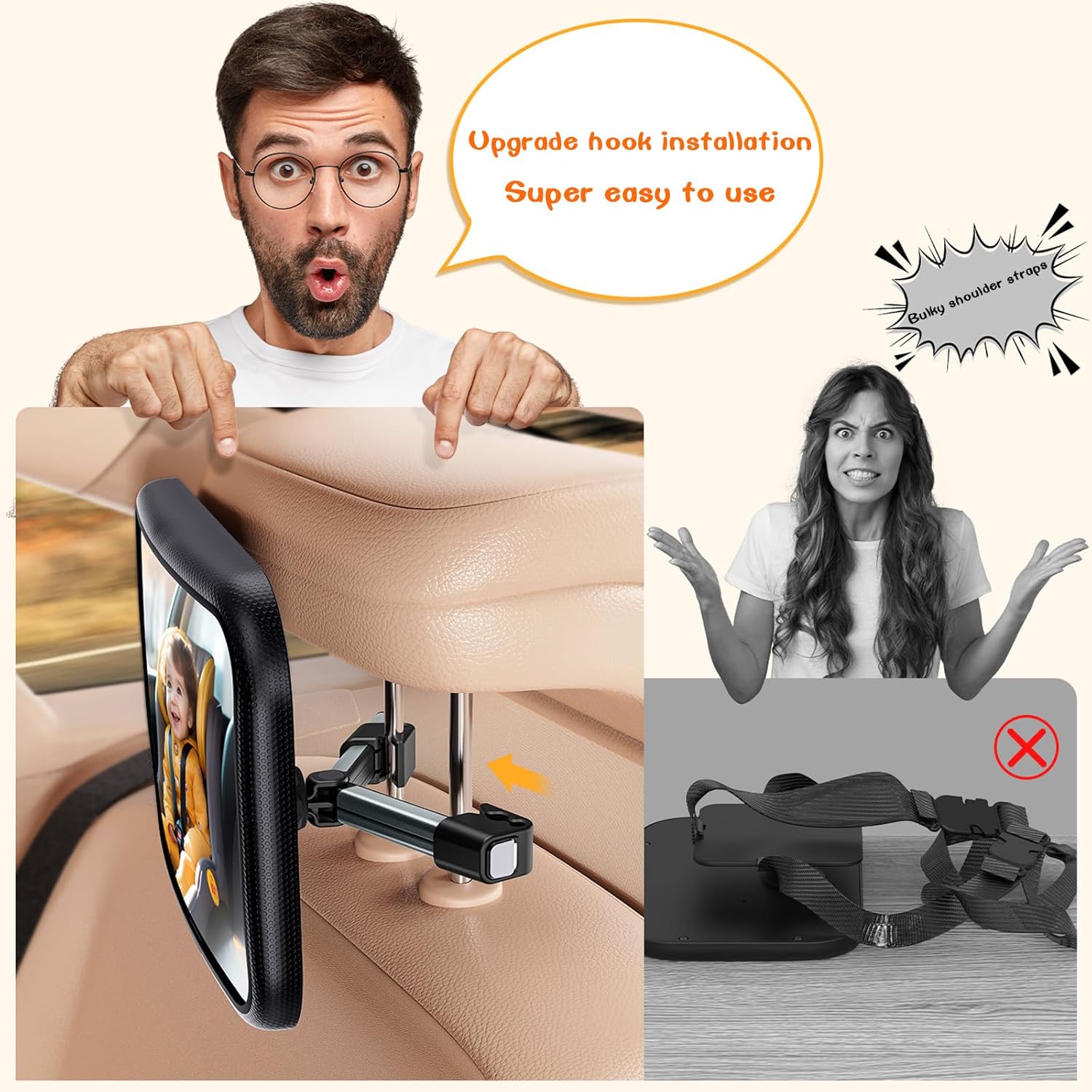 Огледално столче за кола за бебе - Ясен изглед към задната седалка на колата с огледало - Завъртане на 360°, Нечупливо, Огледало за кола за бебе с дизайн с кука и щипка, Подходящо за повечето превозни средства
