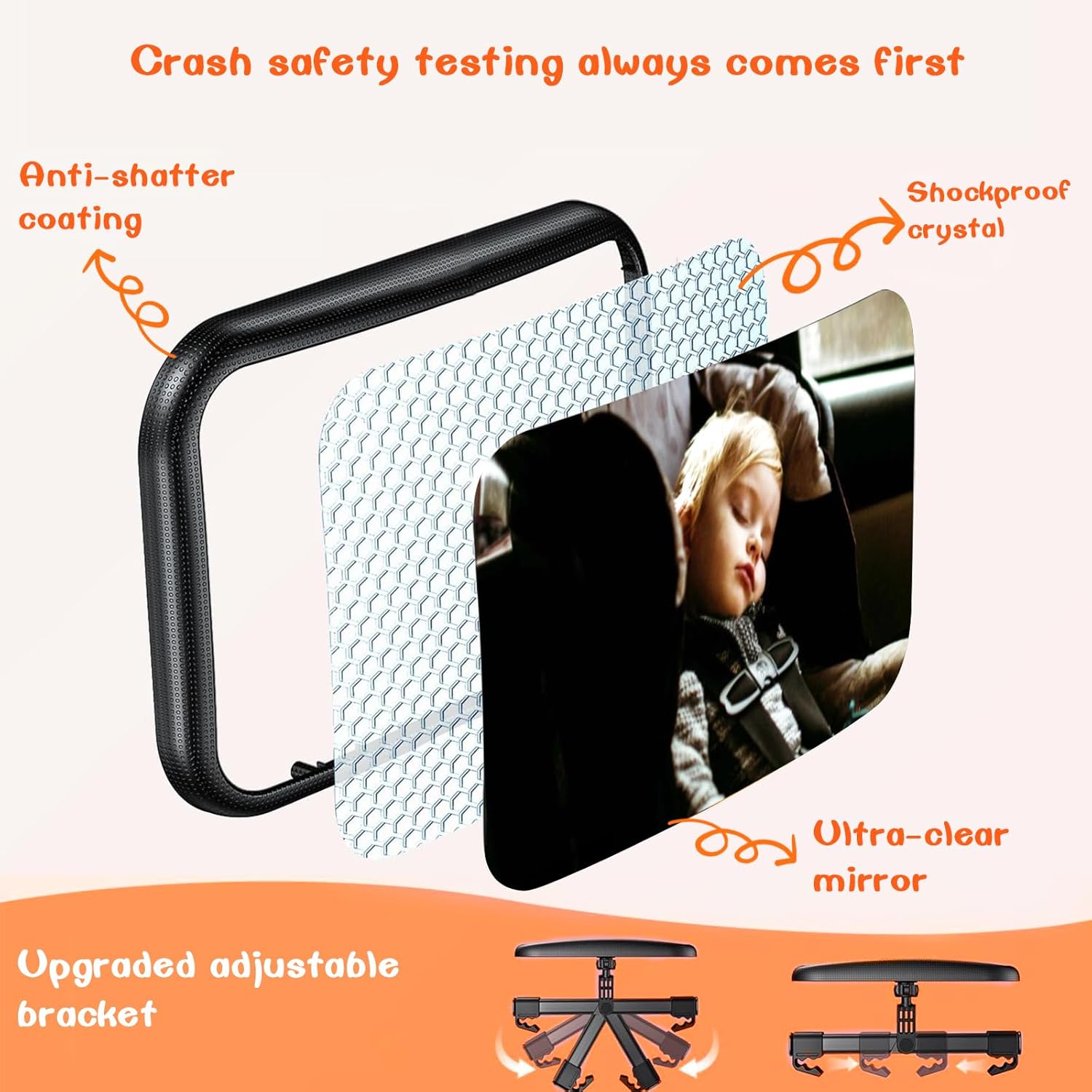 • Регулируемо на 360° за най-добра видимост: огледалото за бебешката задна седалка предлага напълно регулируема функция за завъртане, така че можете да намерите най-добрия ъгъл, за да видите бебето си. Независимо дали шофирате седан, SUV или миниван, нашето огледало за бебешка кола винаги осигурява най-добрата видимост на вашето бебе на задната седалка.