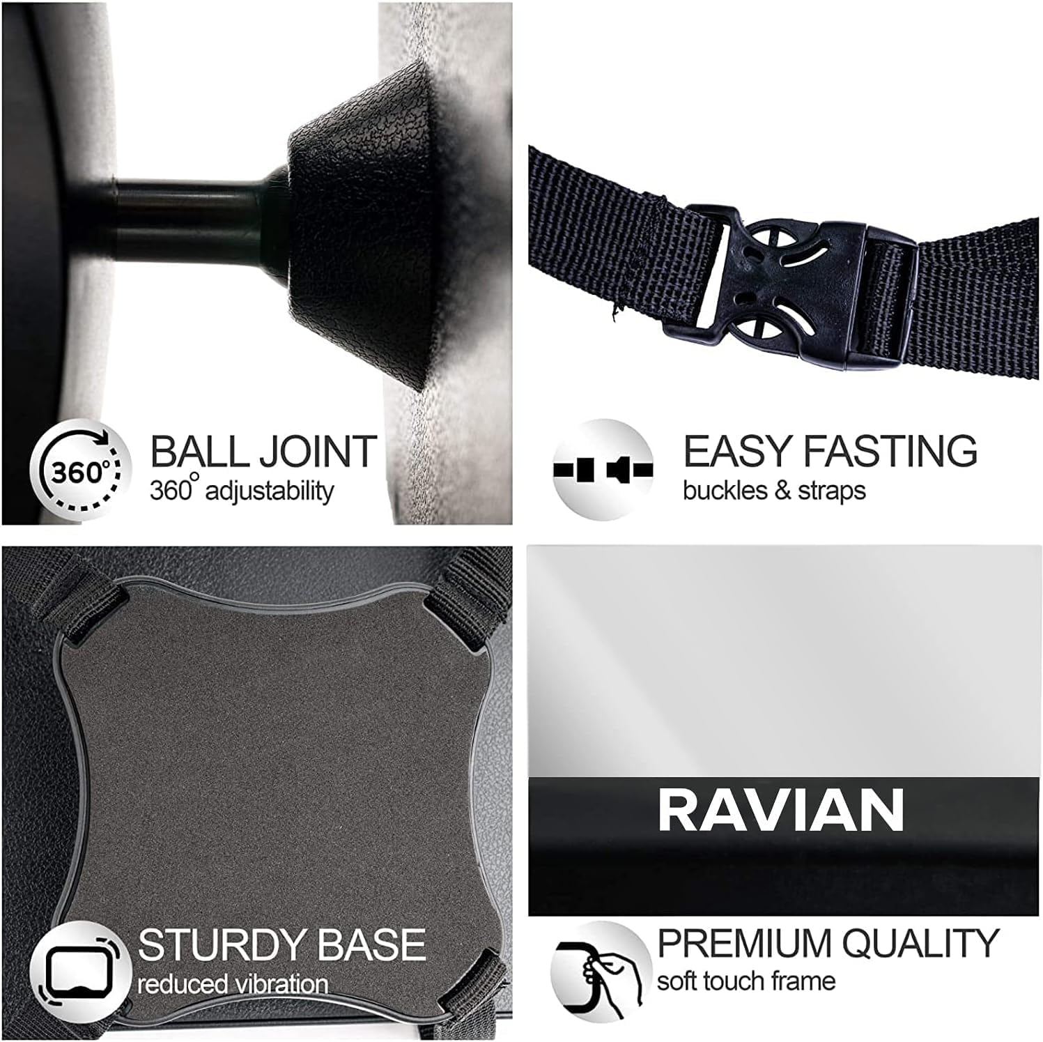 • Еластична и регулируема каишка: огледалото за обратно виждане има две каишки, които могат да се регулират към всяка облегалка за глава, така че стабилната основа да не се плъзга. Катарамите и каишките за закрепване в източен стил предотвратяват движението и люлеенето на огледалото.