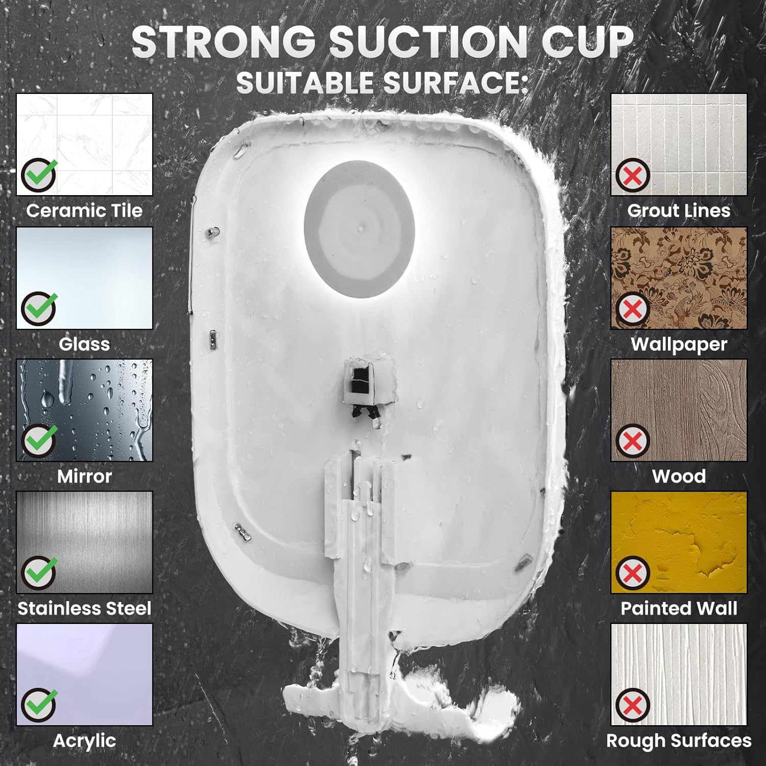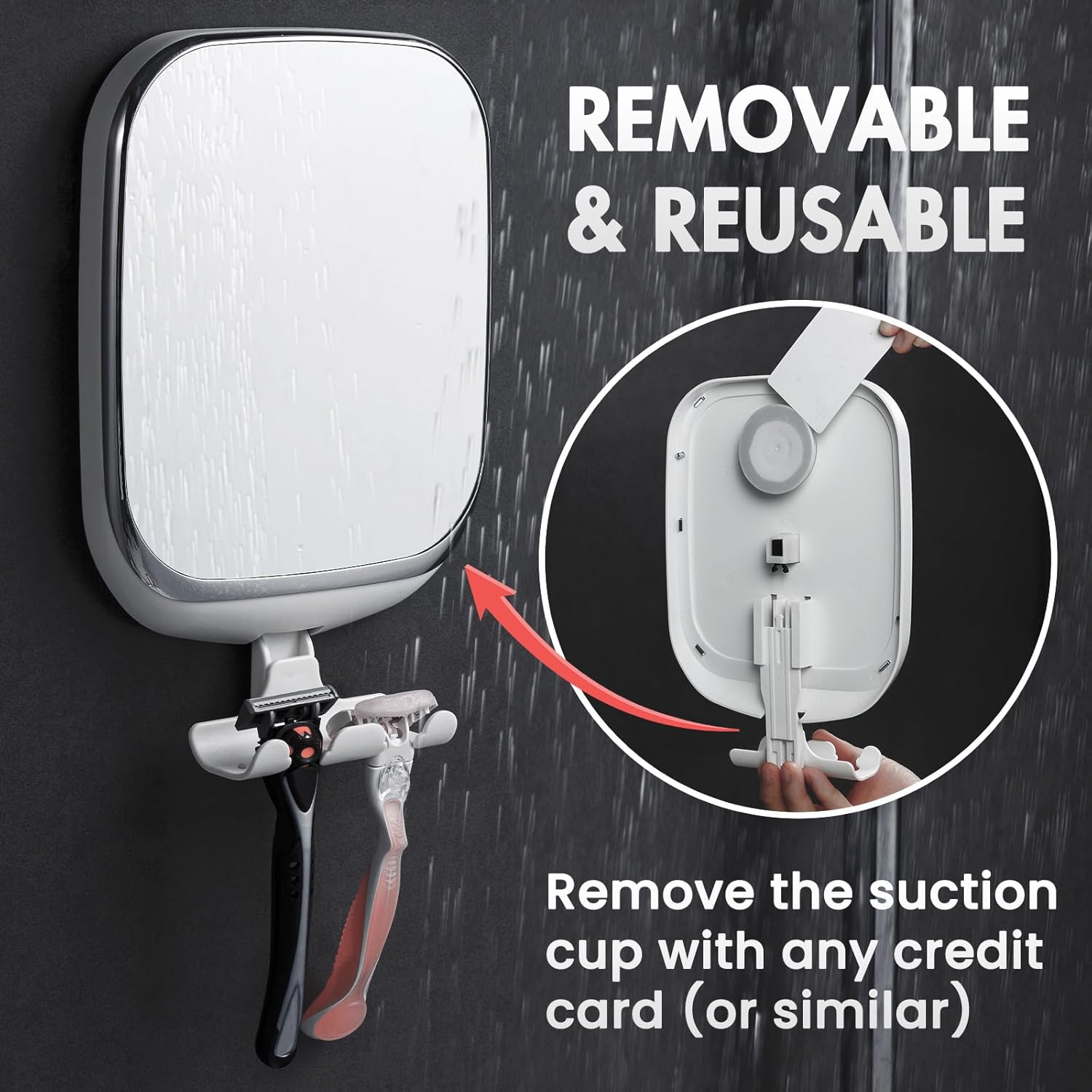 • ГЛАДКО И ВОДОУСТОЙЧИВО ОГЛЕДАЛО Нашето огледало за бръснене е проектирано с гладка повърхност без водни капчици, която осигурява кристално чисто отражение всеки път