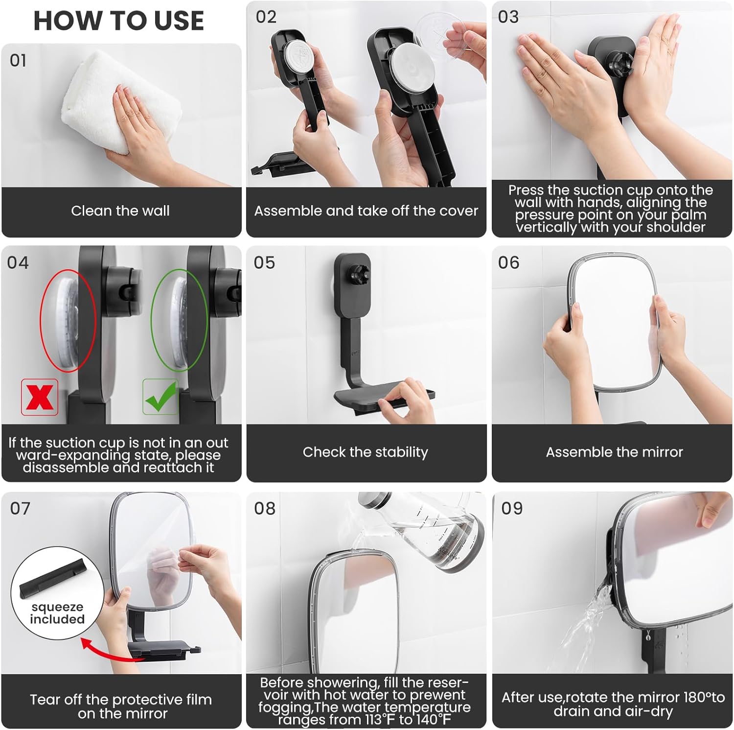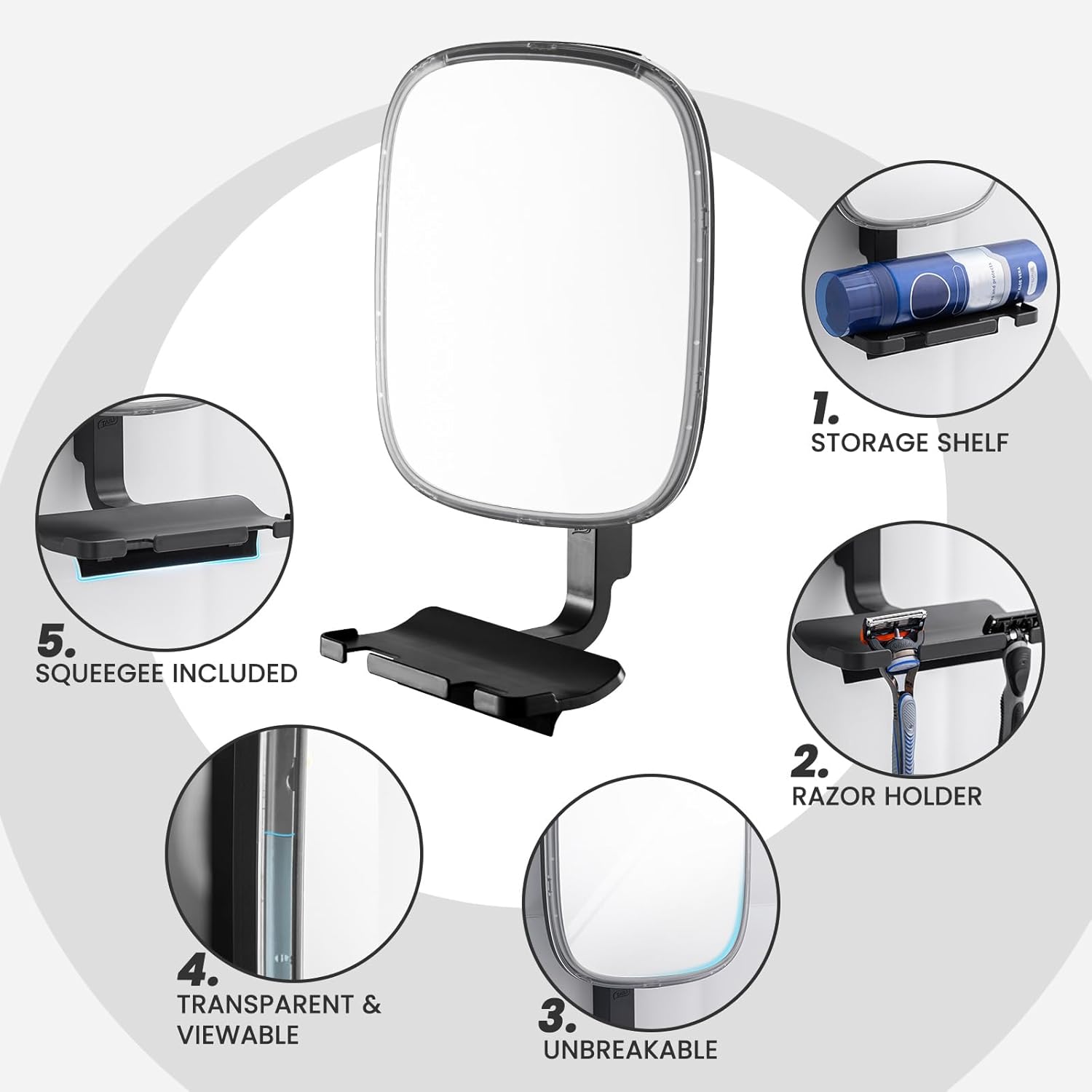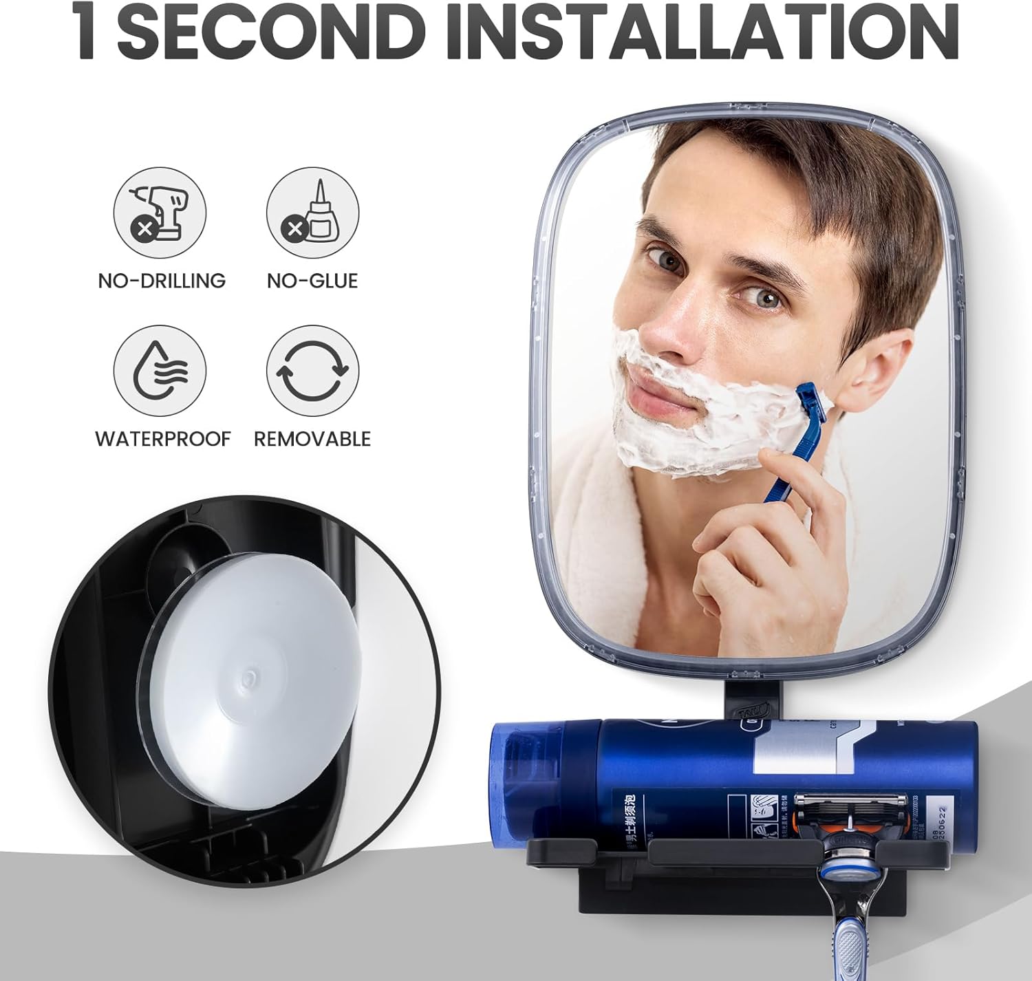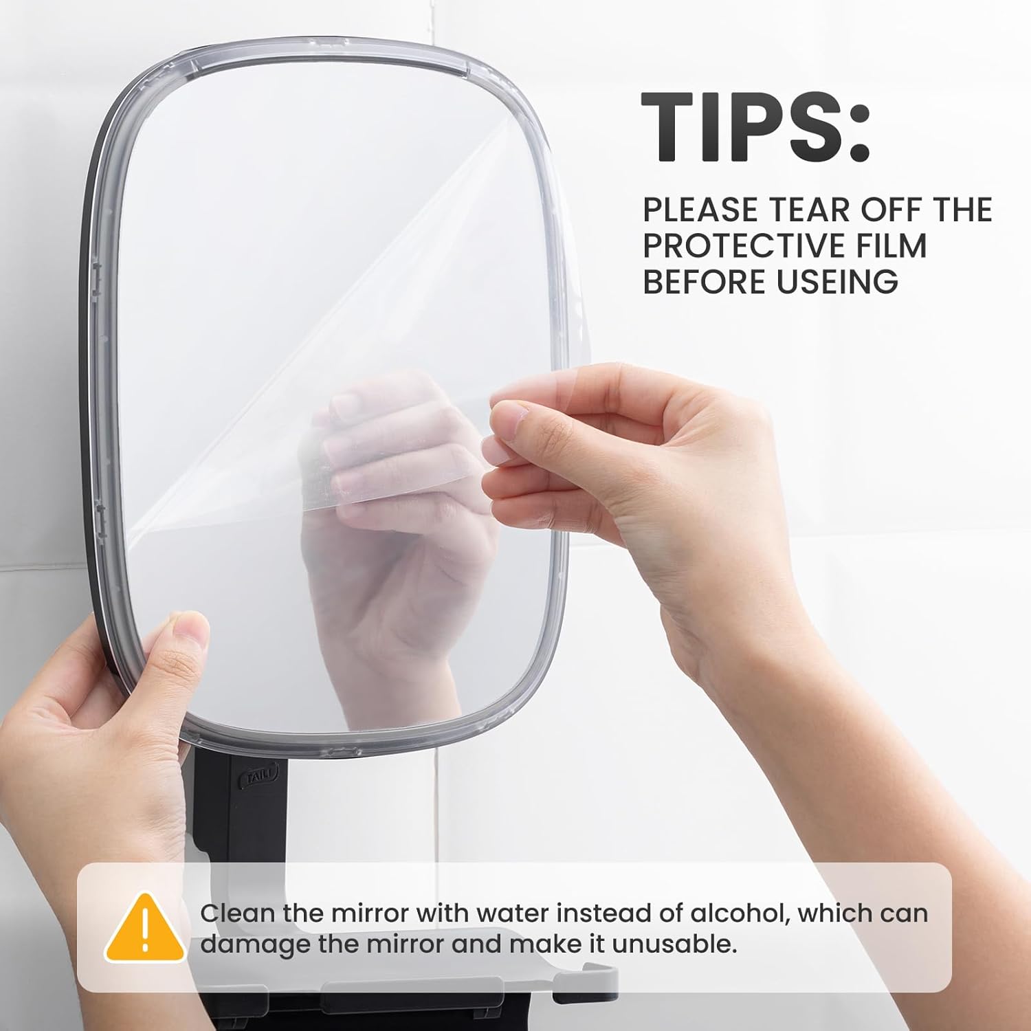 • ГЛАДКО И ВОДОУСТОЙЧИВО ОГЛЕДАЛО Нашето огледало за бръснене е проектирано с гладка повърхност без водни капчици, която осигурява кристално чисто отражение всеки път