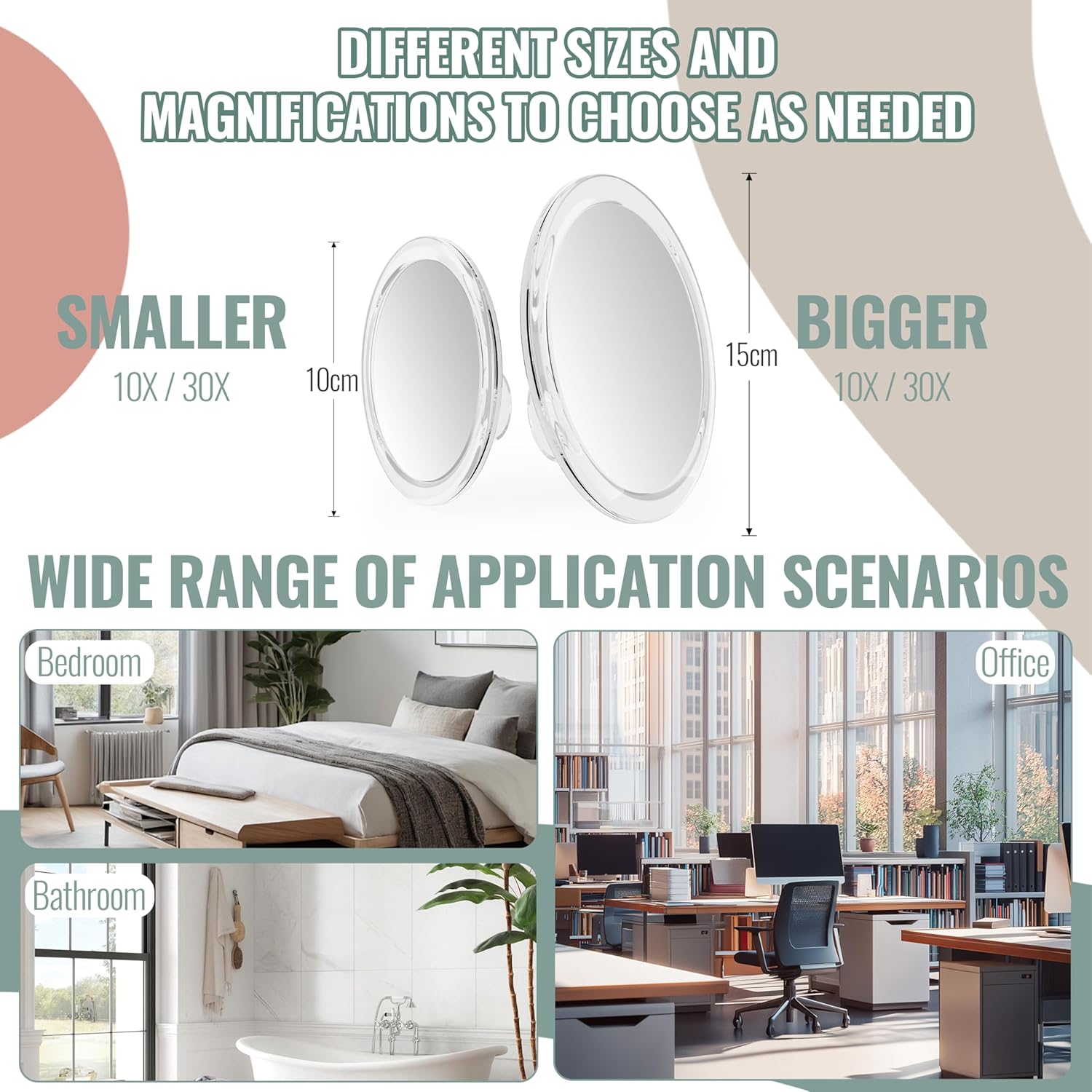 • 1X/30X: Двустранното козметично огледало Auxmir има 1x HD огледало и 30x увеличително огледало. Идеално за ежедневен грим и грижа за лицето, като например скубане на вежди, нанасяне на червило, бръснене и носене на контактни лещи.