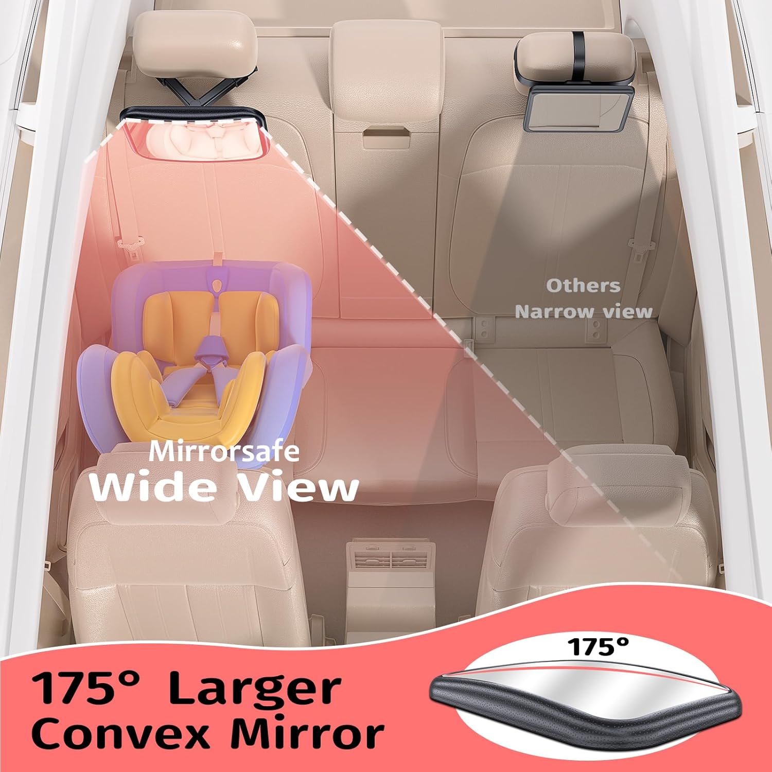• Широкоъгълно изпъкнало огледало: Това огледало за кола, обърнато назад, за бебешко столче за кола, се състои от HD огледало без изкривяване и предлага ясен, широкоъгълен изглед. Изпитайте успокояващото усещане от това да имате бебешко огледало Mirrorsafe в колата си. Никога не обръщайте глава, за да видите обърнатото назад столче за кола, докато шофирате безопасно.