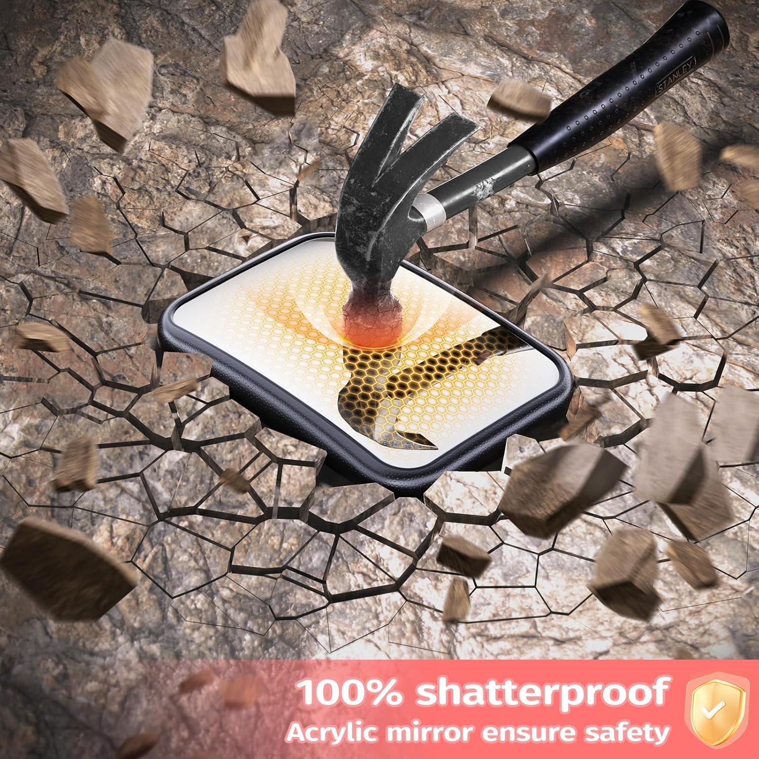 • 100% нечупливо: Това бебешко огледало за кола е изработено от нечупливо акрилно стъкло с огледало, обградено от здрава и издръжлива черна пластмасова рамка. То е устойчиво на удари и сътресения, за да ви държи стабилни по време на шофиране и да гарантира безопасността на вашето бебе.