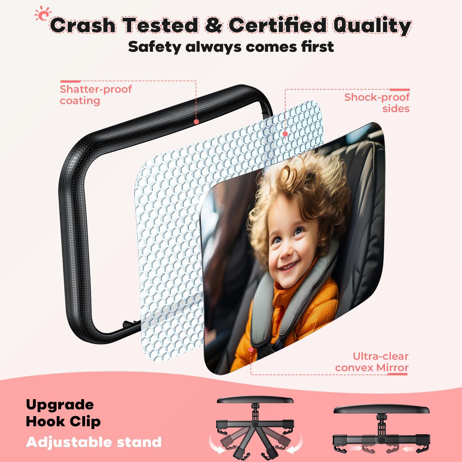 Огледало за кола за бебешка седалка за задната част на колата: Огледало за бебешка седалка за задната част на колата с кука, 100% нечупливо и въртящо се на 360° огледало за задна седалка, бебешко огледало First Equipment & Car Accessories for Car headheads